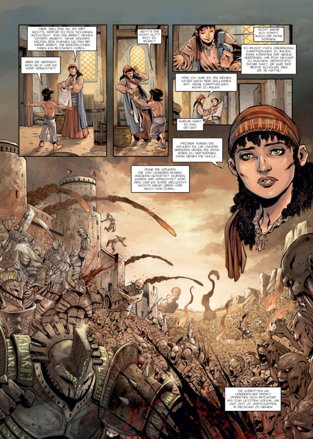 Während des Ghulkrieges erlangten die Runenmagier von Dumn Meisterschaft darin, Golems zu erschaffen. Jetzt, da Frieden herrscht, lassen sie diese zerstörerischen Ungetüme in Arenen antreten, um mit dem Spektakel Geld zu verdienen. Der elfjährige Yoni träumt davon, ebenfalls Golemmeister zu werden, bis er in einer schicksalhaften Nacht zur Waise wird. Von da an hat Yoni nur noch ein Ziel: den perfekten Golem zu erschaffen, der seine Familie rächen wird!