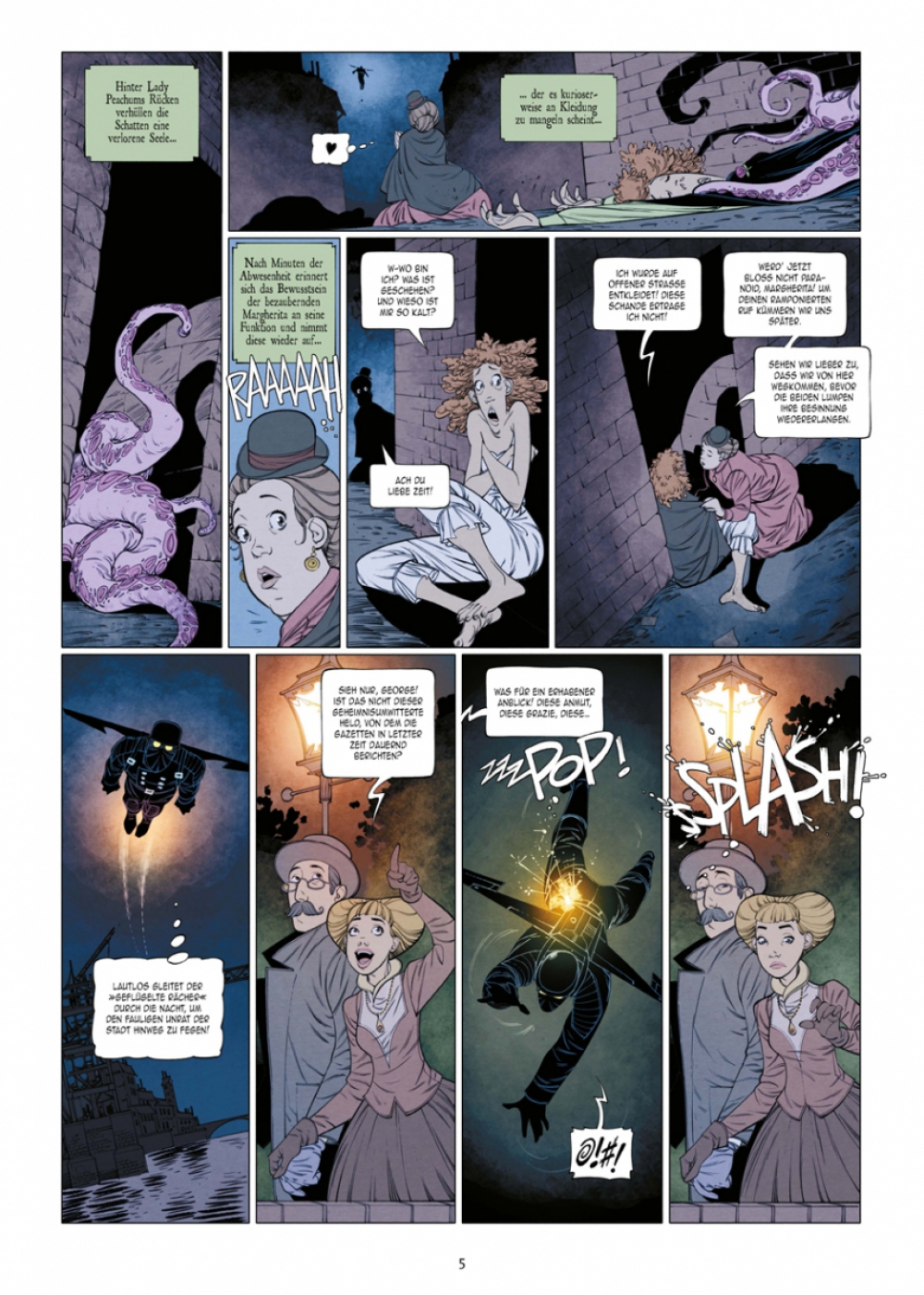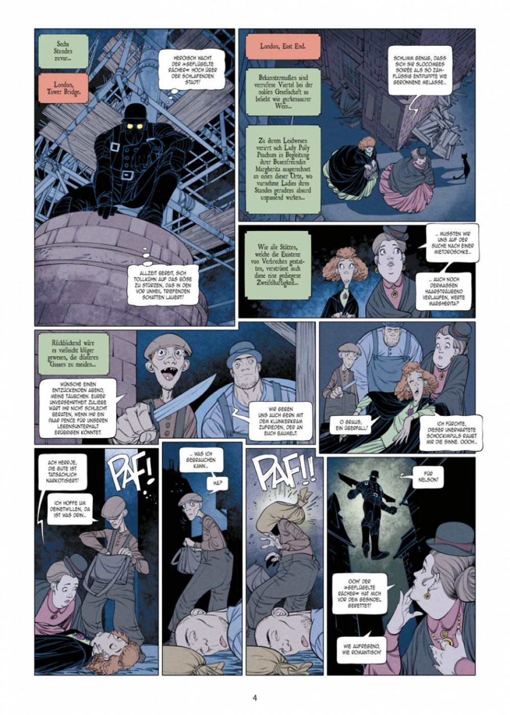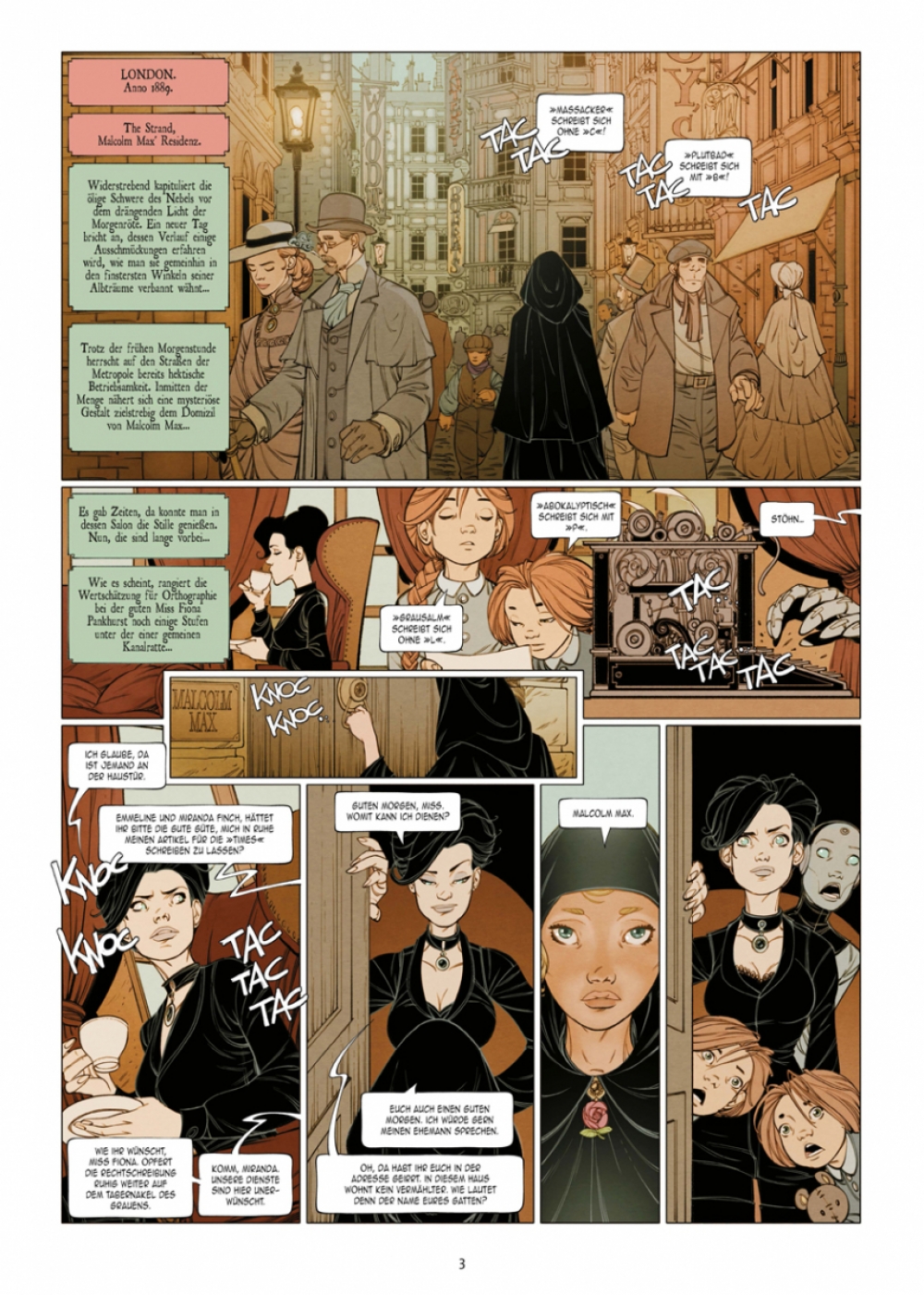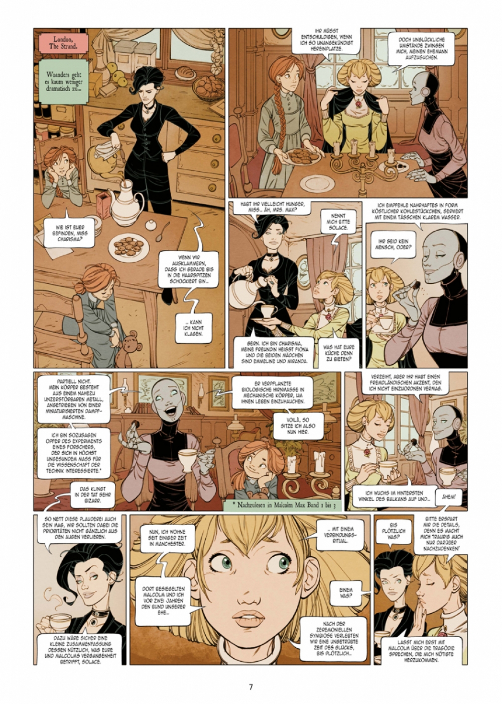 Angesiedelt im viktorianischen England an der Schwelle zum 20. Jahrhundert präsentiert das Künstlergespann Ingo Römling und Peter Mennigen den Auftakt der Steampunk-Mystery- Serie als symbiotischen Entwurf, der mindestens zwei Genretraditionen vereint: die Selbstironie der »Buffy«-Erzählungen und den Manierismus der Schauerromane des 19. Jahrhunderts.