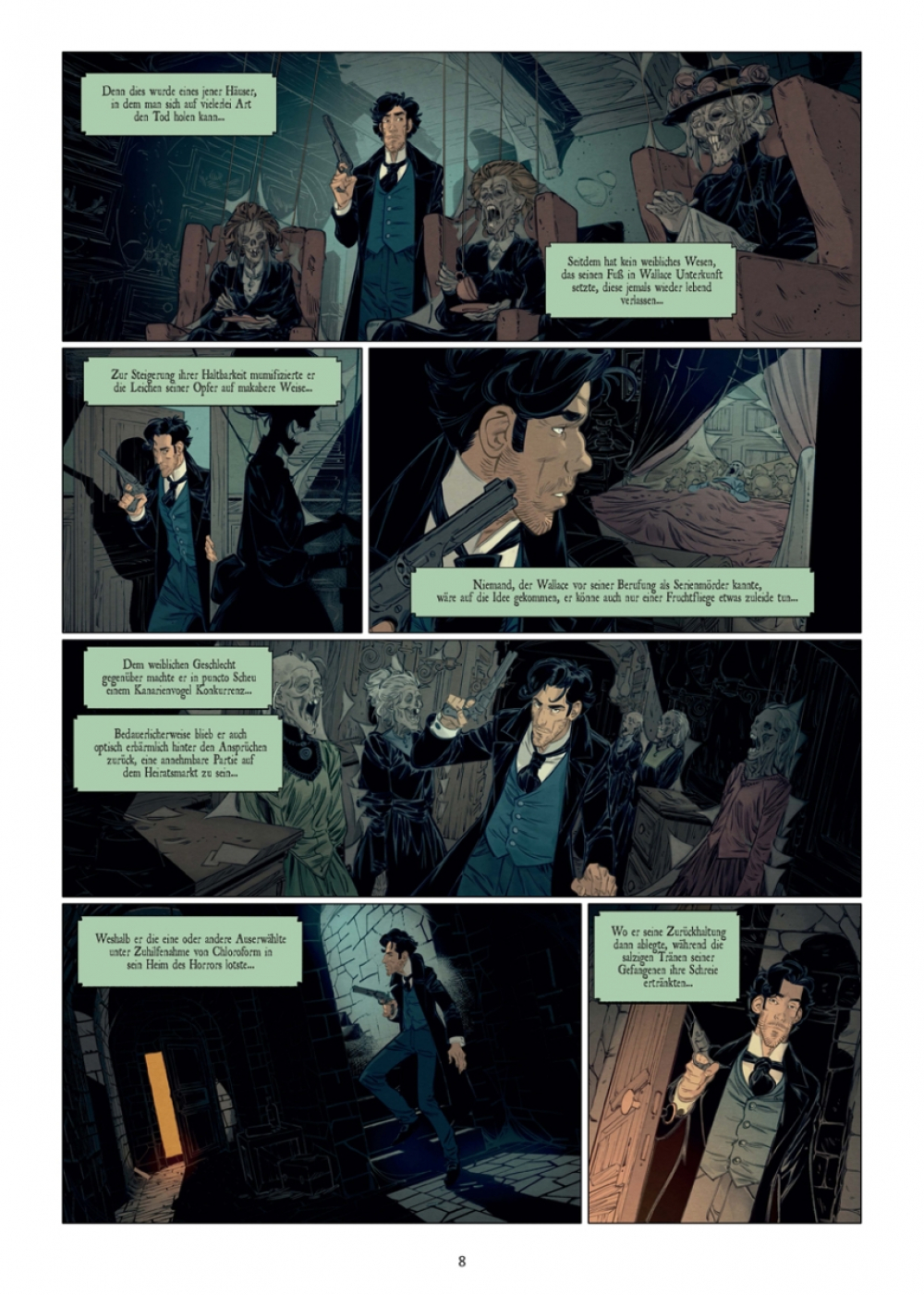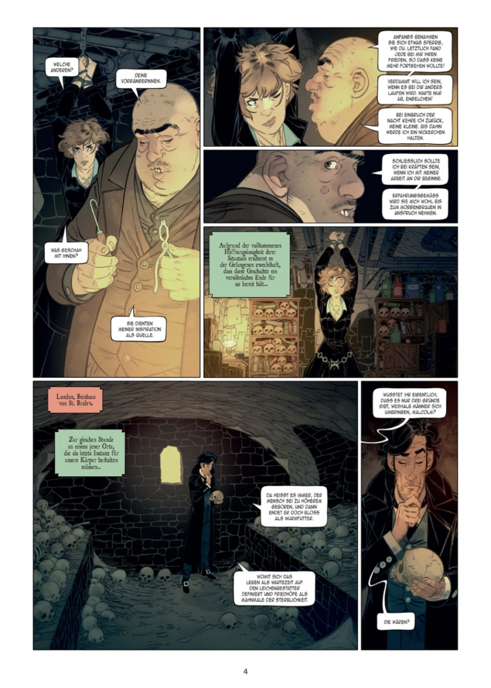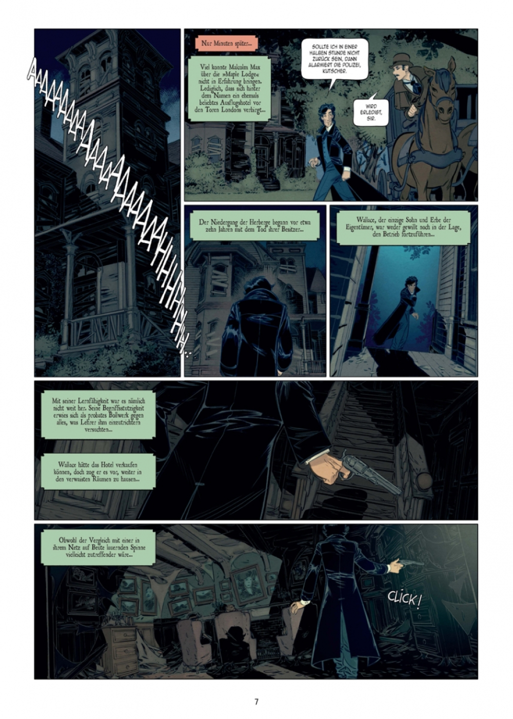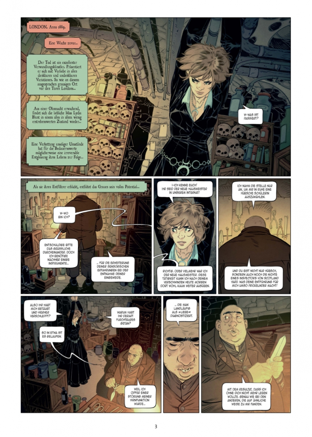 Angesiedelt im viktorianischen England an der Schwelle zum 20. Jahrhundert präsentiert das Künstlergespann Ingo Römling und Peter Mennigen den Auftakt der Steampunk-Mystery- Serie als symbiotischen Entwurf, der mindestens zwei Genretraditionen vereint: die Selbstironie der »Buffy«-Erzählungen und den Manierismus der Schauerromane des 19. Jahrhunderts.