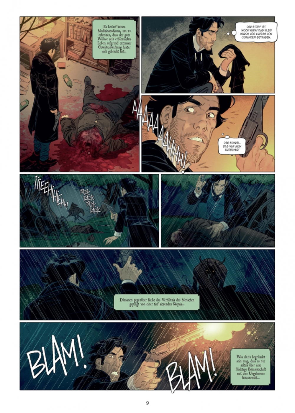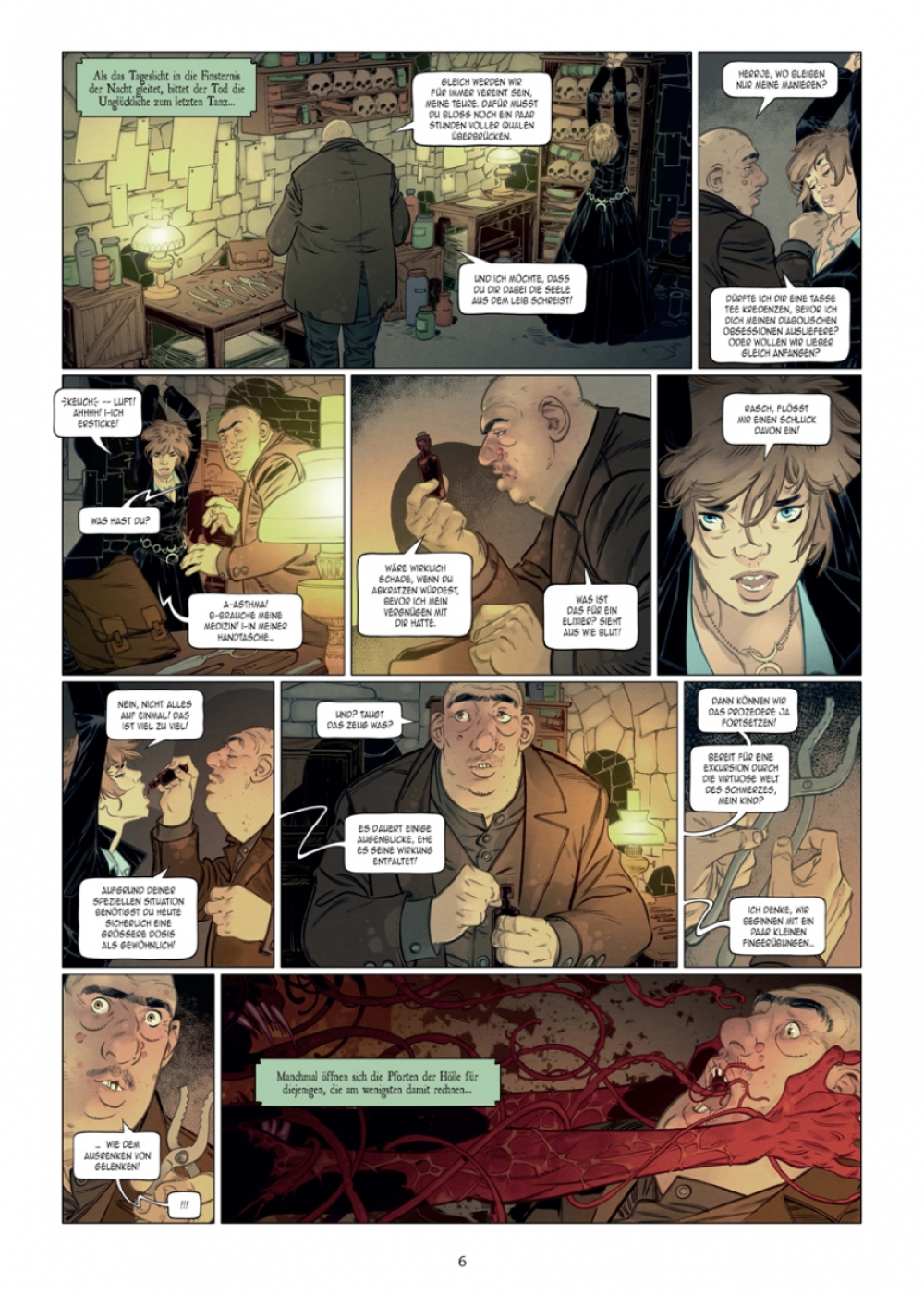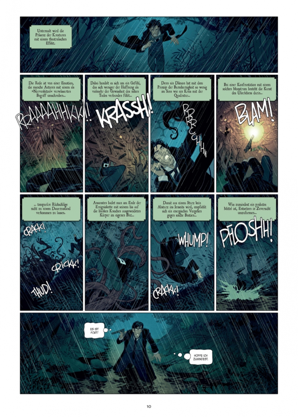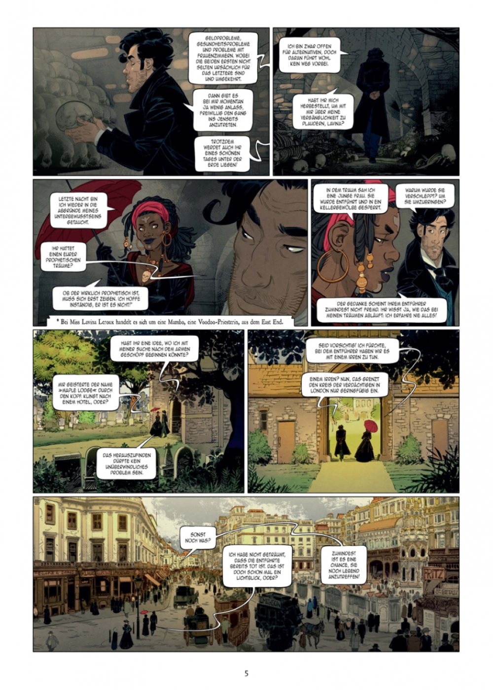 Angesiedelt im viktorianischen England an der Schwelle zum 20. Jahrhundert präsentiert das Künstlergespann Ingo Römling und Peter Mennigen den Auftakt der Steampunk-Mystery- Serie als symbiotischen Entwurf, der mindestens zwei Genretraditionen vereint: die Selbstironie der »Buffy«-Erzählungen und den Manierismus der Schauerromane des 19. Jahrhunderts.