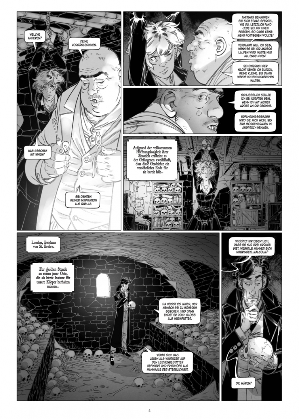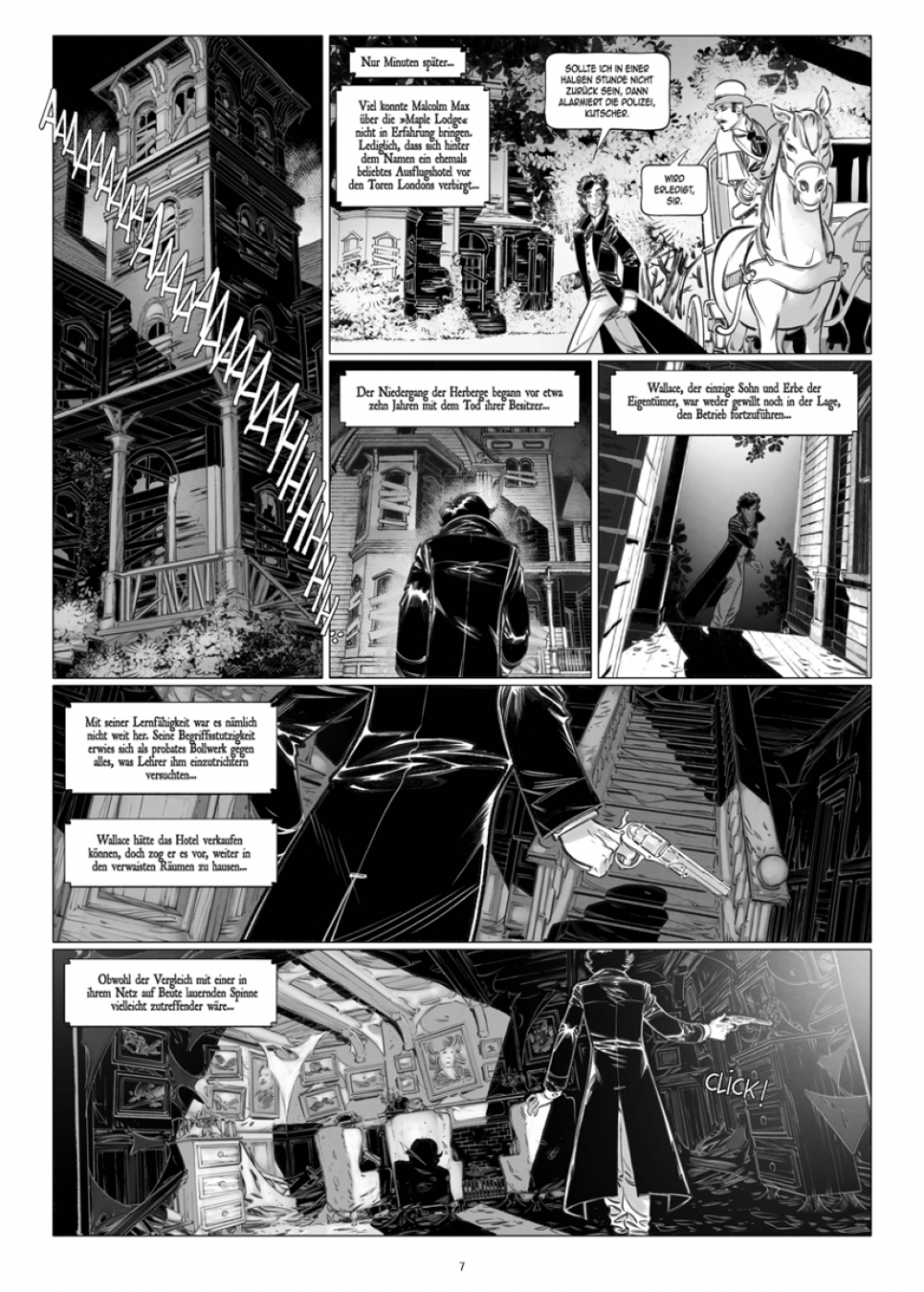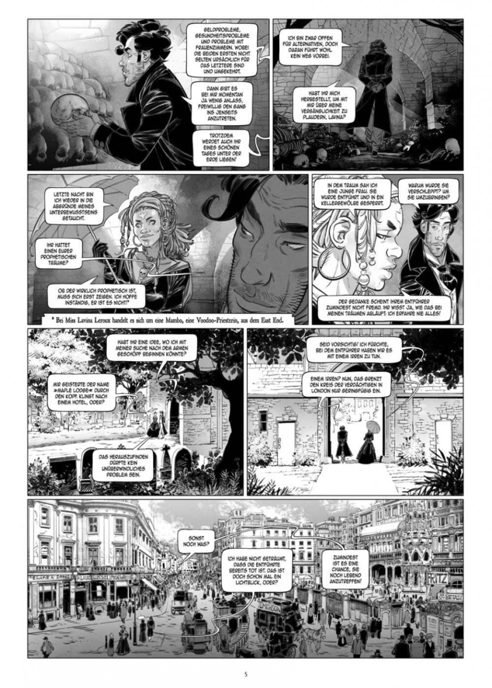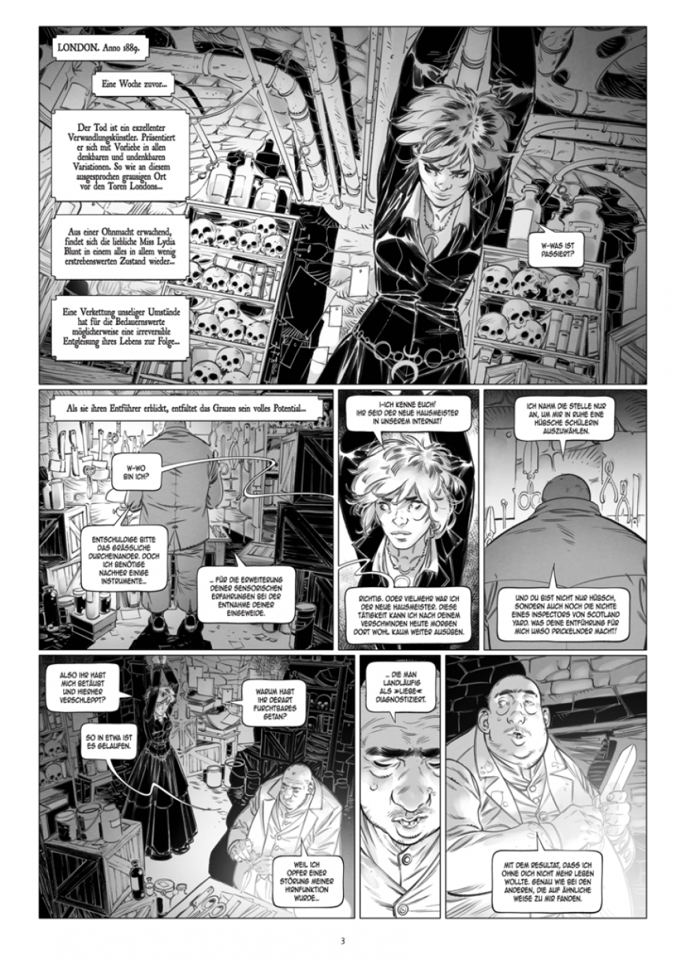 Angesiedelt im viktorianischen England an der Schwelle zum 20. Jahrhundert präsentiert das Künstlergespann Ingo Römling und Peter Mennigen den Auftakt der Steampunk-Mystery- Serie als symbiotischen Entwurf, der mindestens zwei Genretraditionen vereint: die Selbstironie der »Buffy«-Erzählungen und den Manierismus der Schauerromane des 19. Jahrhunderts.