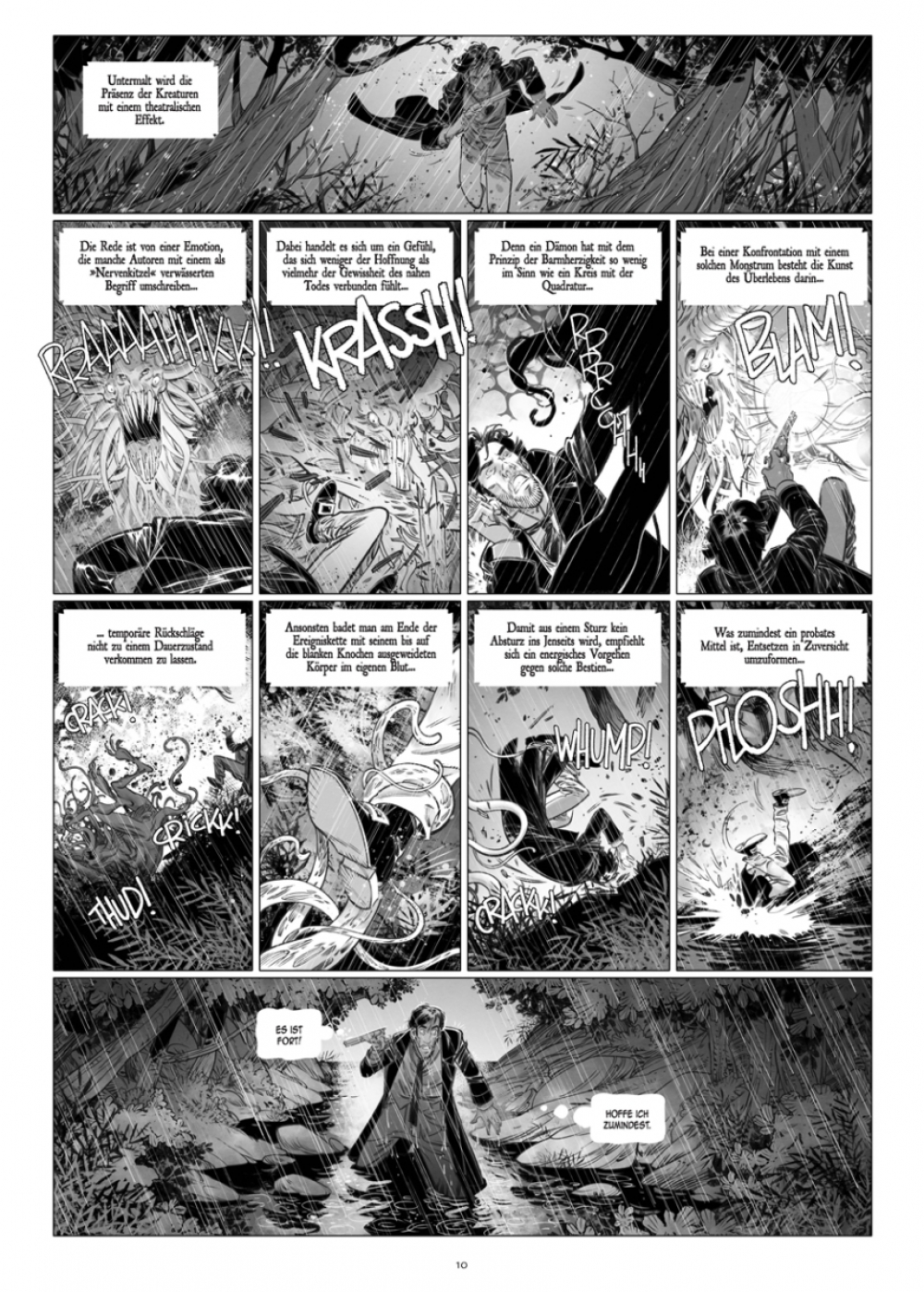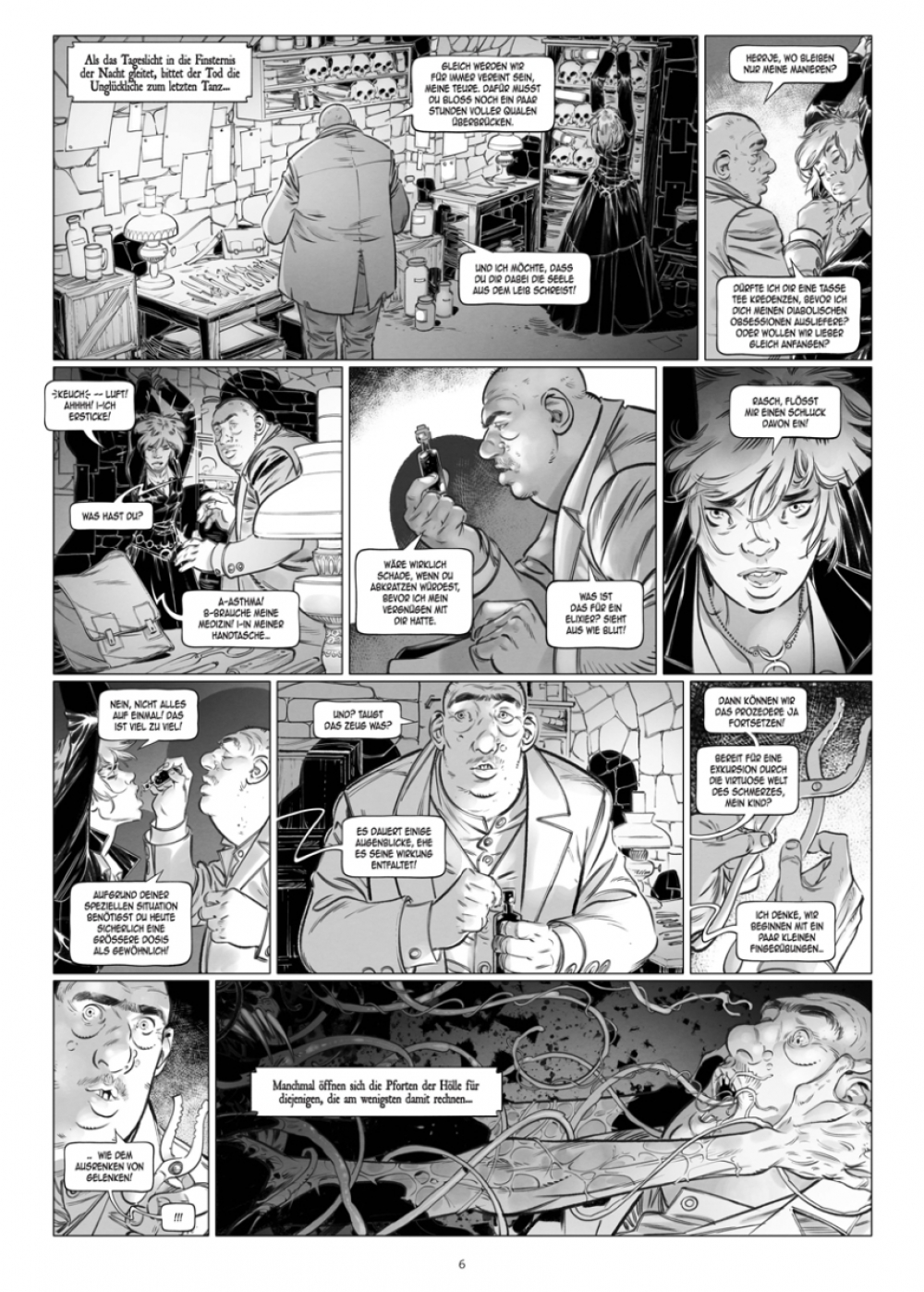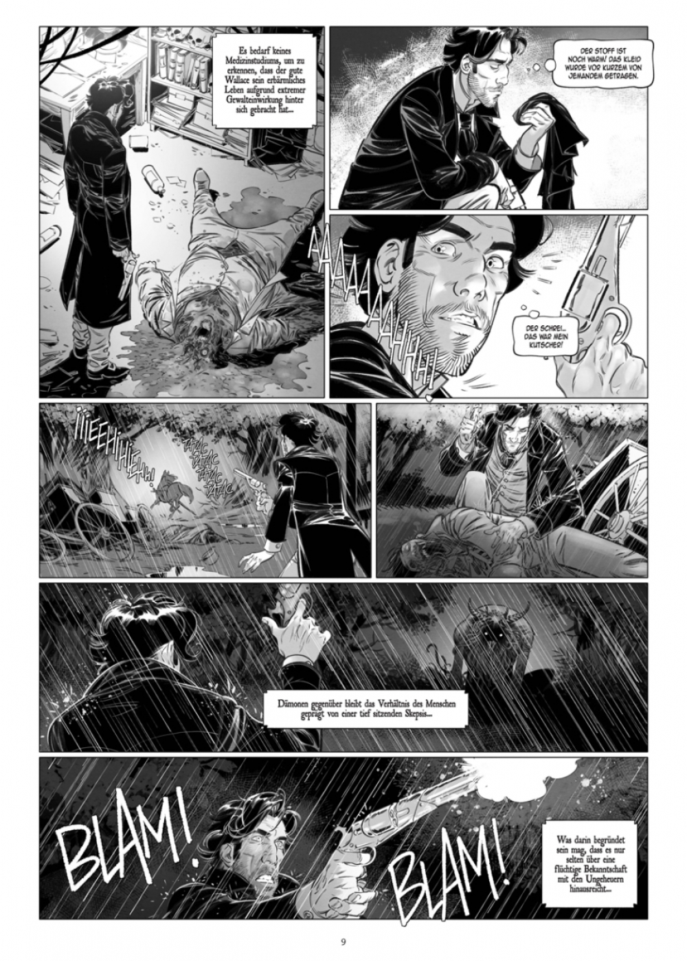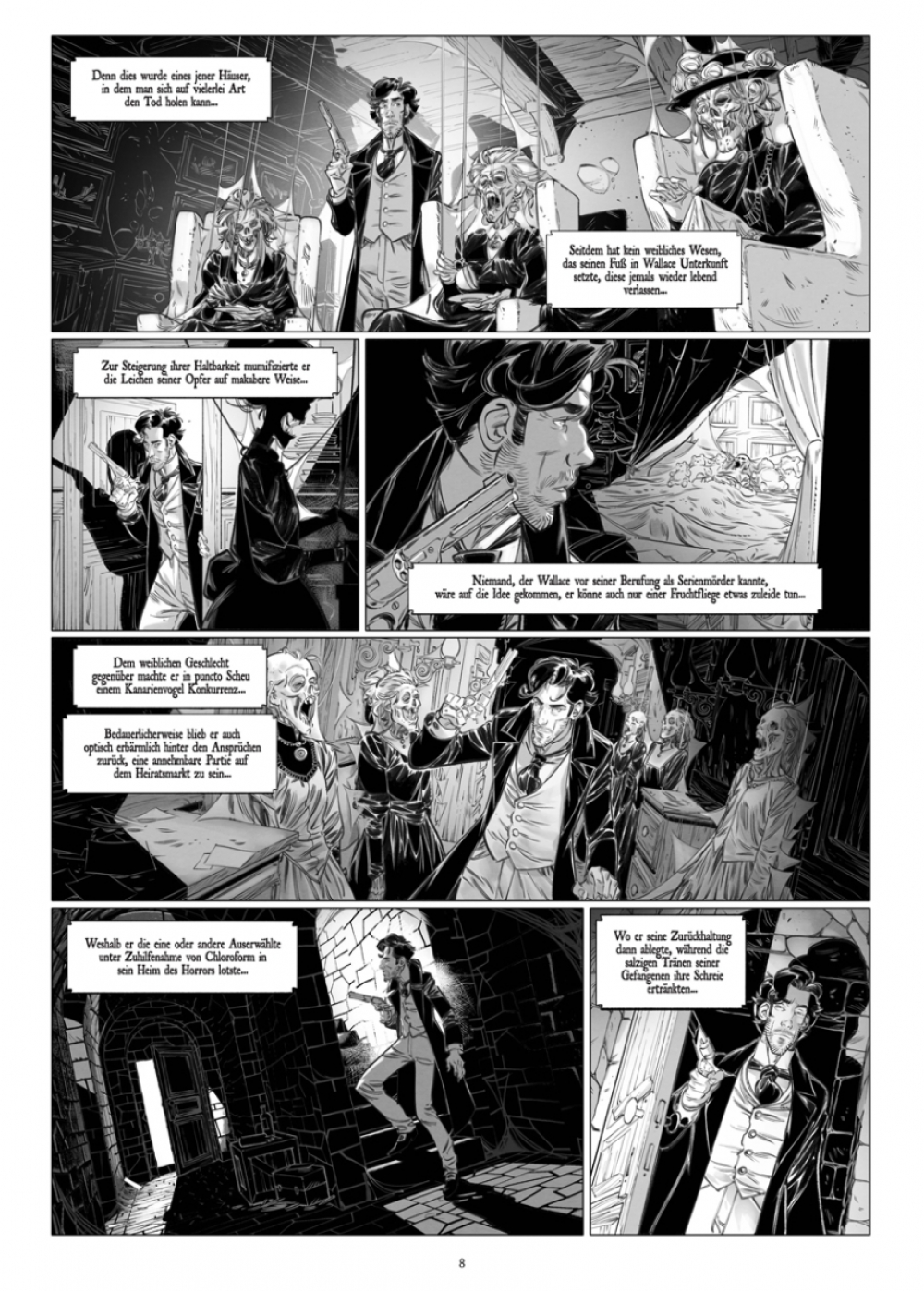 Angesiedelt im viktorianischen England an der Schwelle zum 20. Jahrhundert präsentiert das Künstlergespann Ingo Römling und Peter Mennigen den Auftakt der Steampunk-Mystery- Serie als symbiotischen Entwurf, der mindestens zwei Genretraditionen vereint: die Selbstironie der »Buffy«-Erzählungen und den Manierismus der Schauerromane des 19. Jahrhunderts.