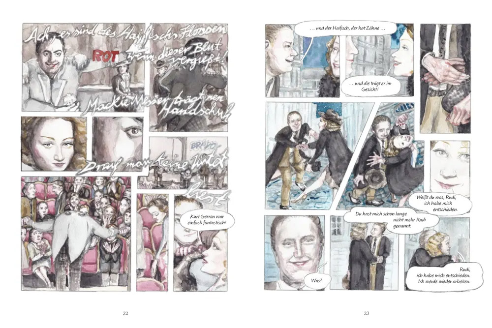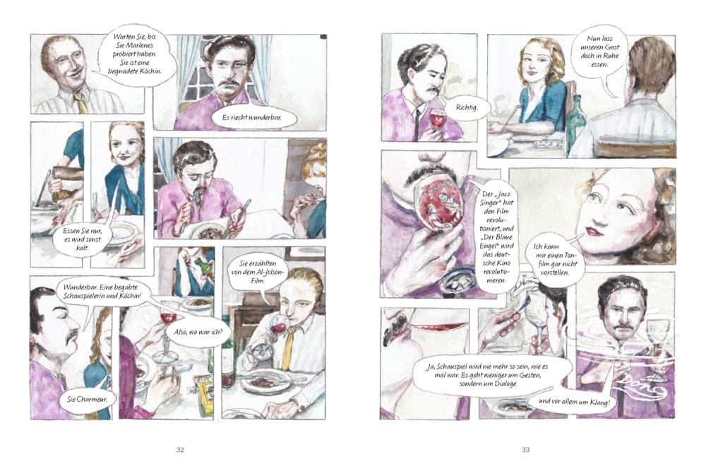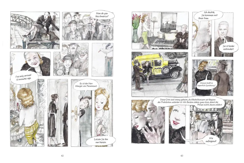Jede Szene dieser außergewöhnlichen Graphic Novel ist dabei durchdrungen von dem Flair, den Marlene Dietrich bis heute umgibt. Ihre androgyne Erscheinung in Hosenanzug und Zylinder fasziniert dabei ebenso sehr wie ihr Auftreten als Diva, die davon singt, dass sie „von Kopf bis Fuß auf Liebe eingestellt“ sei. Marlene Dietrich ist eine Ikone, deren Anziehungskraft bis heute überdauert.