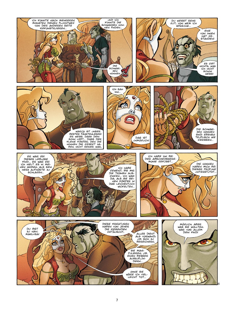 Während ihrer Gefangenschaft bei den Kidriks erfährt Marlysa, dass ihr totgeglaubter Sohn noch lebt. Die geheimnisvollen »schwarzen Nonnen« hatten gelogen, um sich des Kindes zu bemächtigen... Doch Marlysa flieht aus dem Lager der Kidriks in der Hoffnung, Spuren ihres Sohnes zu finden. Cilia, Stirius und Ossian begleiten sie auf ihrer Reise. Allmählich jedoch bemerken die Gefährten Veränderungen im Verhalten der Kriegerin. Eine gänzlich neue Marlysa hat ihren Auftritt...