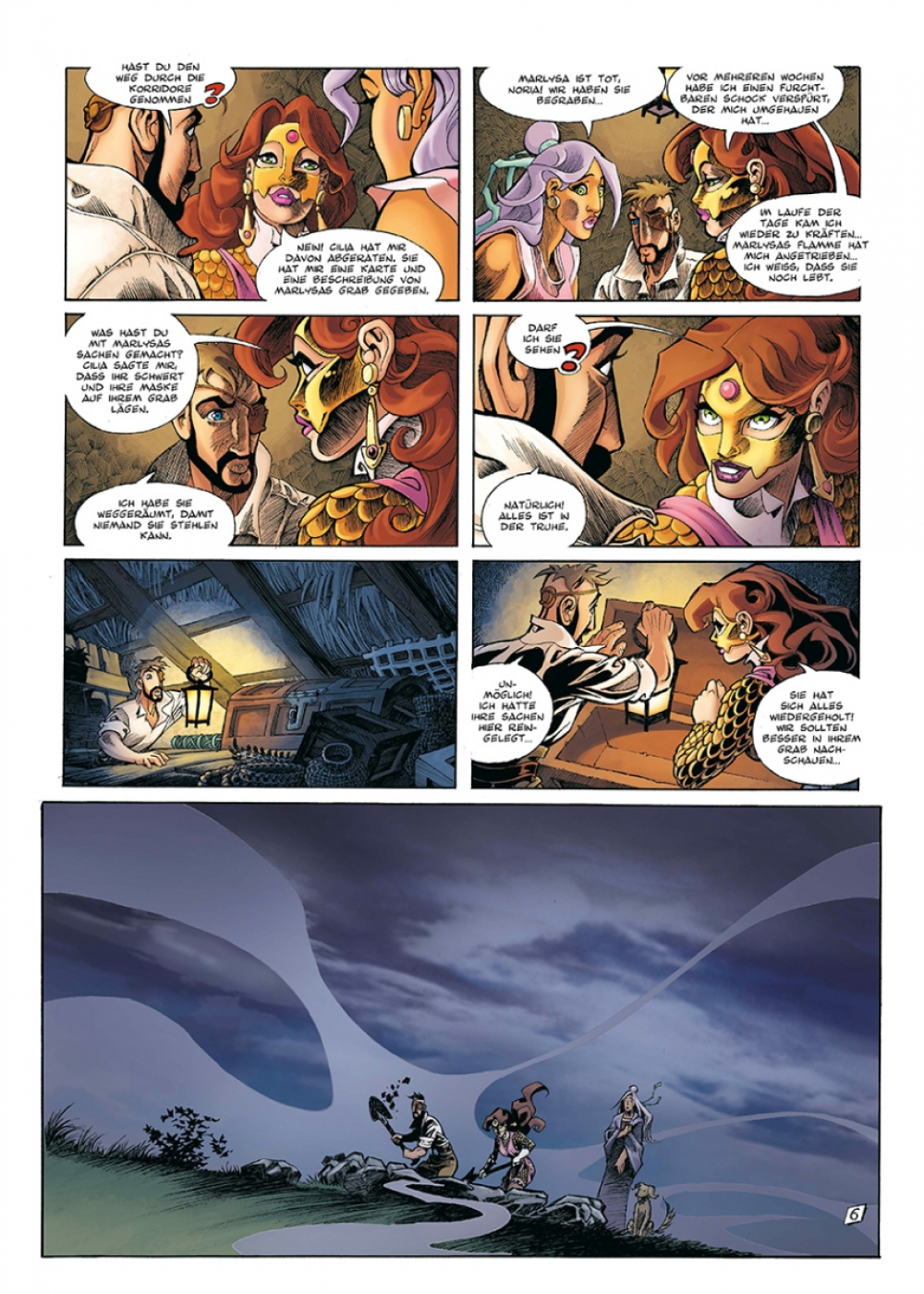 Das Dorf Calris ist von Marlysas Tod zutiefst erschüttert, denn die sterblichen überreste der Kriegerin sind spurlos verschwunden. Doch auf ihrem Grabstein findet sich ein Hinweis, dem Noria, Celia und Tatrin folgen. Sie landen auf einer Insel, deren Bewohner behaupten, eine mysteriöse Frau gesehen zu haben. Die neue Marlysa wird bald auftauchen...