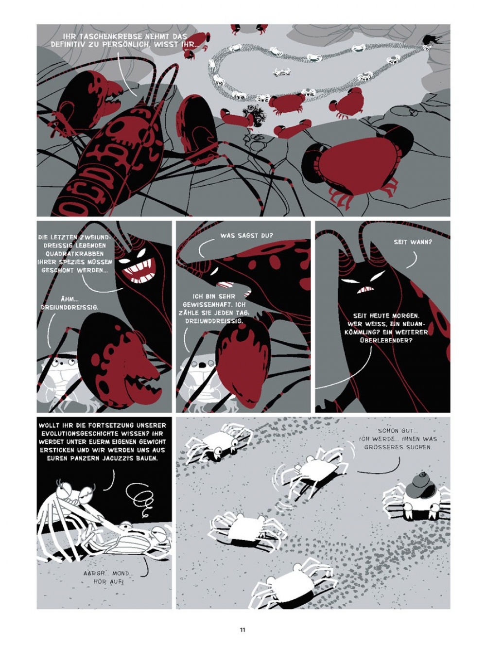 Seit 400 Millionen Jahren dürfen sich alle möglichen Arten fröhlich weiterentwickeln. Alle bis auf einen: der Krebs Simplicimus vulgaris, auch genannt »die quadratische Krabbe«. Diese Unterart der Krebstiere bewohnt die Ufer der Gironde-Mündung und ist seit Jahrtausenden mit einem seltsamen Fehler geschlagen: Sie kann niemals die Richtung ändern und ist dazu verdammt, auf ewig in einer Linie zu laufen! Doch an einem ganz normalen Sommertag wie jeder andere, während die Urlauber die Sonne und ihren bezahlten Urlaub genießen, beginnen drei kleine quadratische Krabben plötzlich zu rebellieren – und damit das gesamte Ökosystem zu stören!