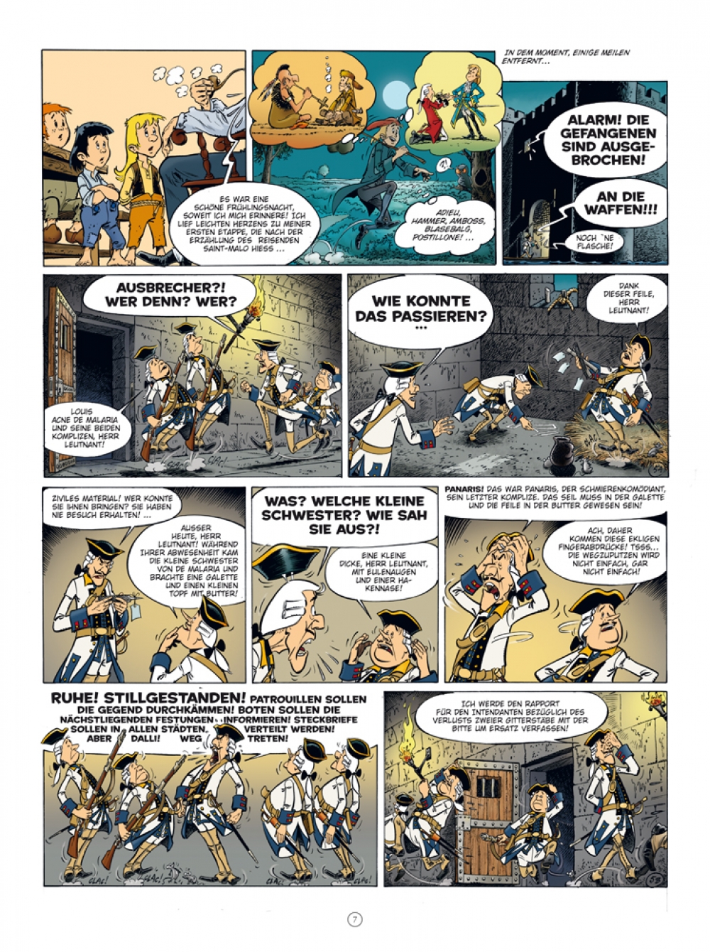 Sie begeben sich auf die Suche nach der Trommel eines legendären Zauberers, die magische Kräfte haben und der Seite, die sie besitzt, einen Vorteil im Kampf Franzosen gegen Engländer verschaffen soll. Aber auch Malaria, der seine Dienste an die Engländer verkauft hat, ist schon auf der Suche nach dieser Zaubertrommel ...