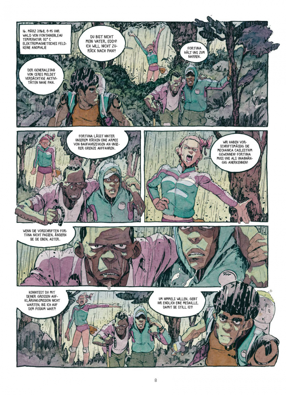 Kaum haben Aster und ihre Mitstreiter vor der „Mechanica Caelestium“ für ihre Heimat Pan die Unabhängigkeit erkämpft, schon fährt der mächtige Nachbar Fortuna seine neue Waffe an Pans Grenze auf. Asters Trupp eilt zurück nach Hause, verirrt sich aber und landet in der neutralen Zone namens Kwell. Hier leben tolerante, hilfsbereite Menschen, hier knüpft man ein Netz aus Wissen, Recht und Gerechtigkeit, hier liest man Bücher und lebt in Frieden. Bis das militante Fortuna seinen langen Arm auch hierhin ausstreckt und nach illegalem digitalen Gerät fahndet…