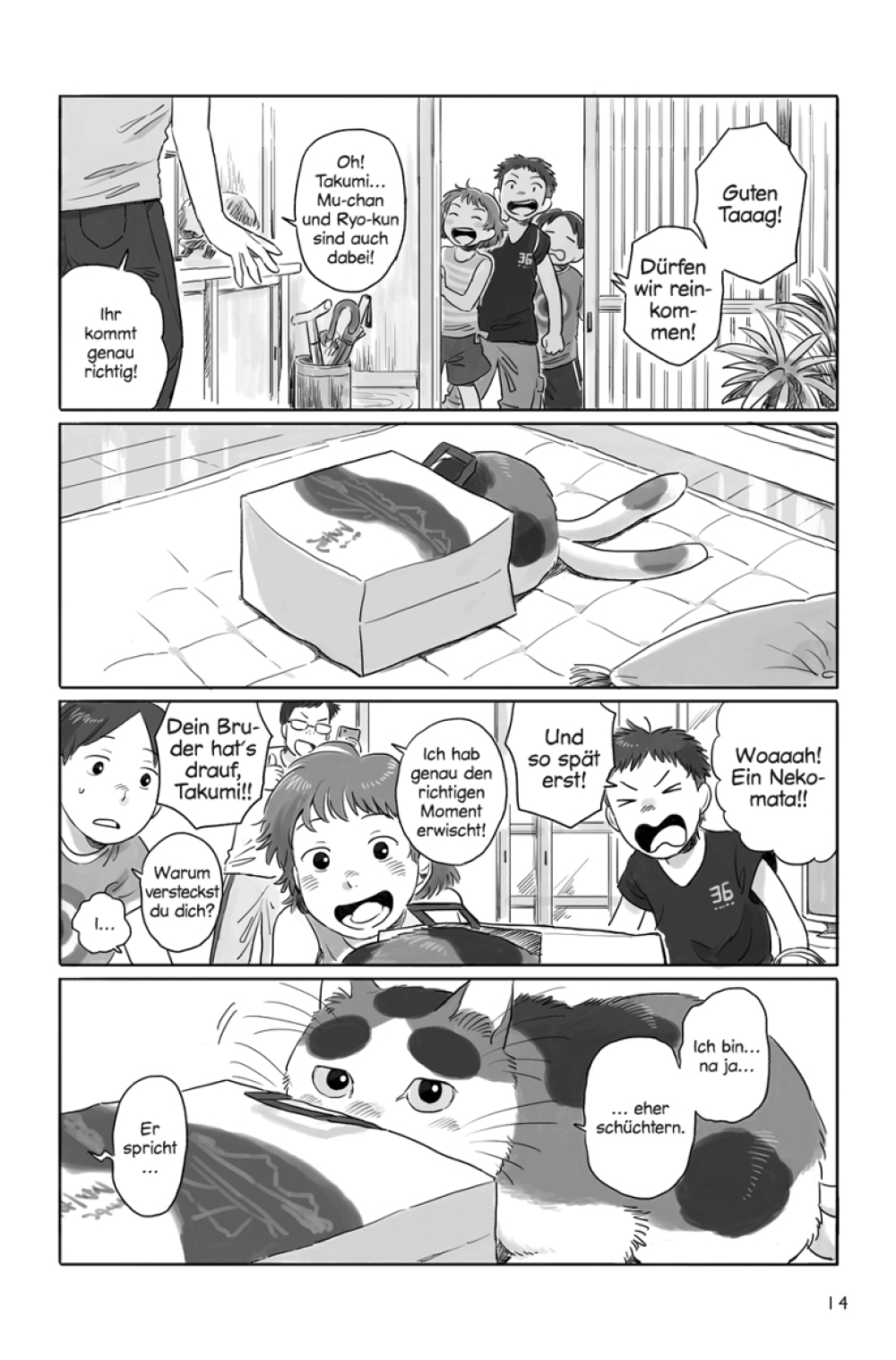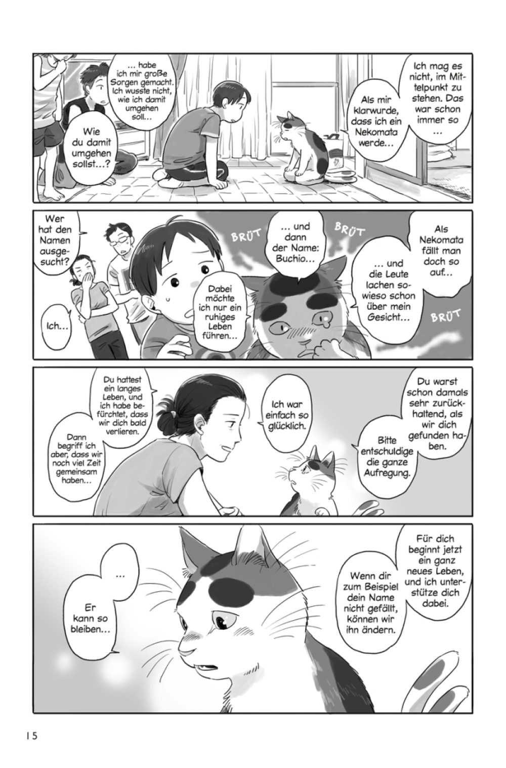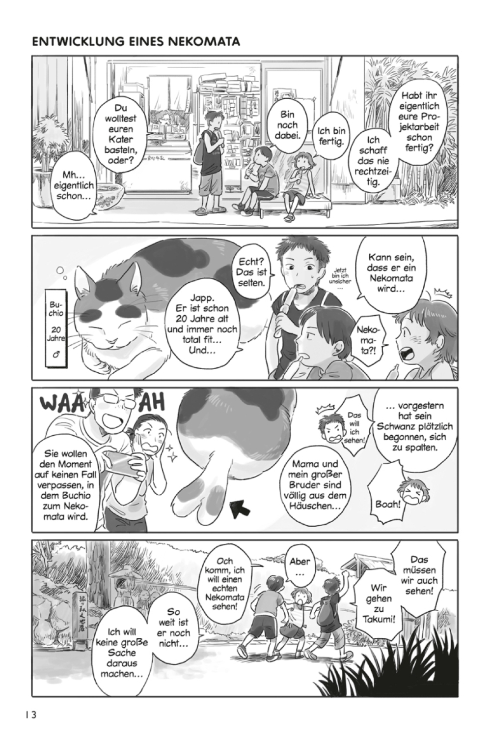 In der schnuckeligen Kleinstadt Fuchigamori leben Geister, Menschen und Götter als ganz normale Nachbarn nebeneinander. Eines Sommers verwandelt sich der alte Kater Buchio plötzlich in eine Nekomata, einen bösartigen Katzen-Yokai! Der Kater ist völlig überfordert und ganz und gar nicht glücklich über sein neues Schicksal. Vielleicht weiß der Kitsune Yuri Rat und kann dem sensiblen Buchio helfen, mit seinen neuen Kräften zurechtzukommen. Aber nicht nur Buchio, sondern auch seine menschliche Nachbarin hat so ihre Probleme: Mu-Chans Vater ist spurlos verschwunden, und dann verliebt sie sich auch noch in Jiro, den Raben-Tengu, der Fuchigamori seit Urzeiten beschützt…