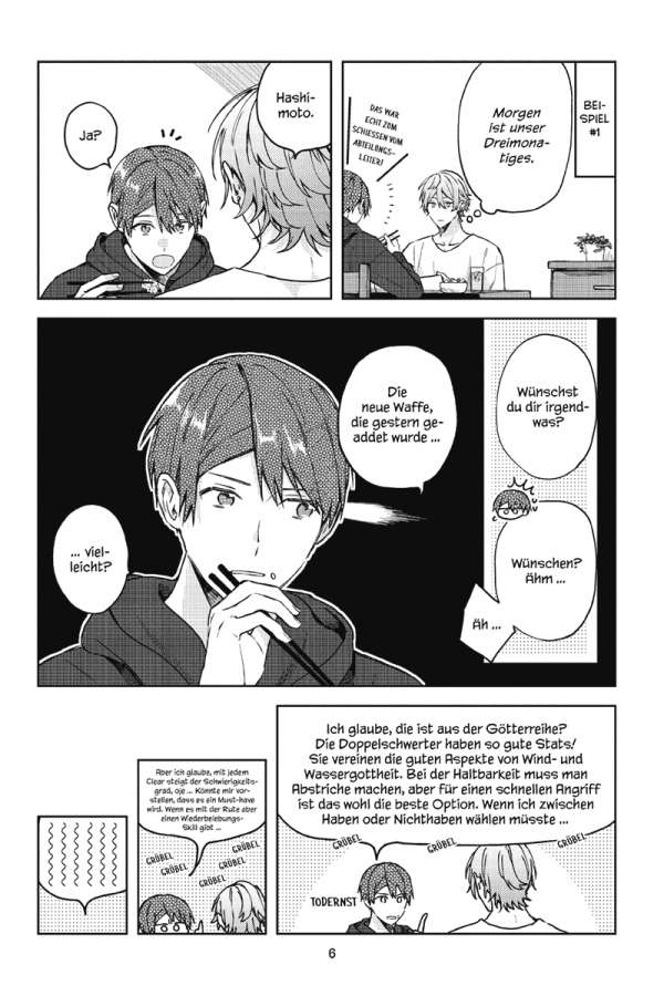 Hashimoto kann sein Glück kaum fassen! Nicht nur sind er und sein Boss Shirase endlich ein Paar, nein, seit einem Monat wohnen sie sogar zusammen! Nun können sie in ihrem eigenen Reich endlich romantische Stunden zu zweit verbringen … oder auch nicht! Denn zu ihrem Alltag gehören weder aufregende Dates noch stimmungsvolle Nachtspaziergänge – sondern ausgerechnet Games.