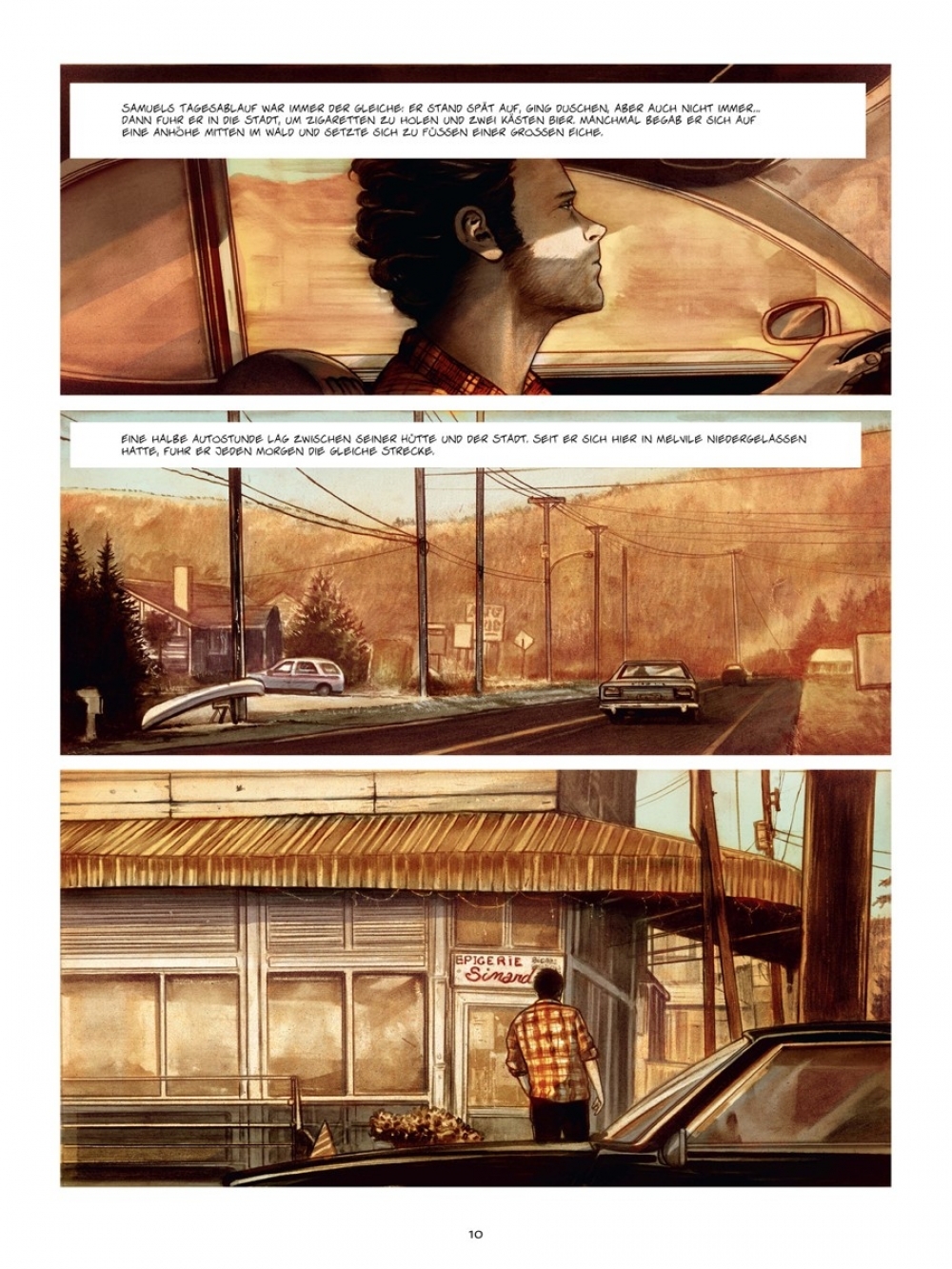 Vor kurzem hat sich der Schriftsteller Samuel Beauclair in Melvile im Haus seiner Kindheit niedergelassen. Sein erster Roman war von einem gewissen Erfolg gekrönt, doch er muss erkennen, dass er seither an einer Schreibblockade leidet. In Melvile hofft er auf neue Inspiration. Doch jeden Tag ist es das gleiche Spiel: Samuel belügt sich, seine Frau Sarah und seinen Verleger, lässt sich am Telefon verleugnen, flüchtet sich in Alkohol und Selbstzweifel. Routiniert ist allenfalls die tägliche Fahrt in die Stadt, um die Zigaretten- und Bierreserven aufzustocken.