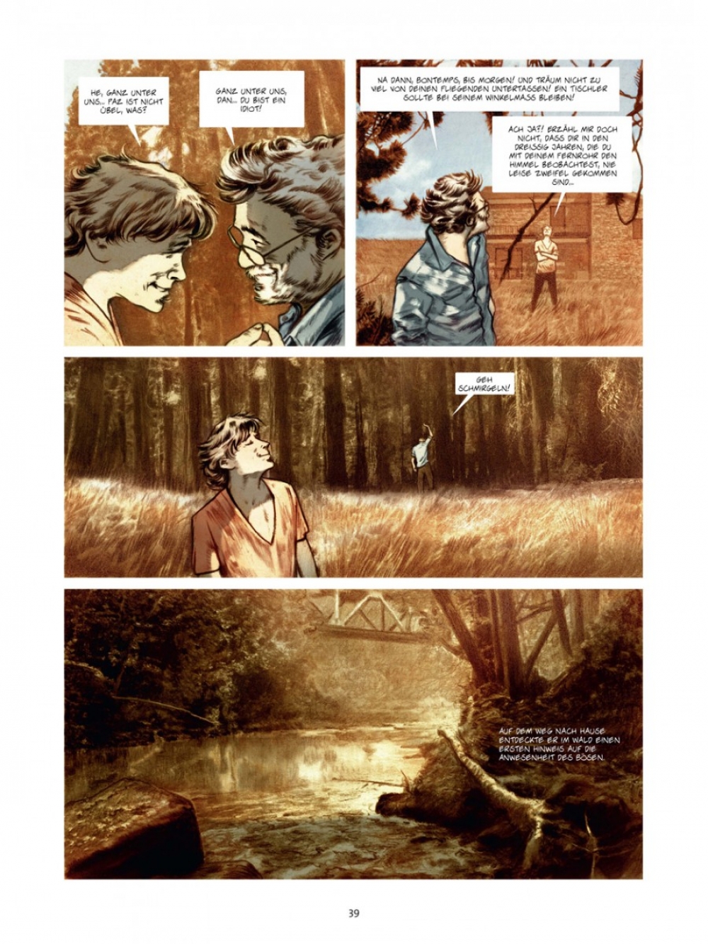 Ein multimediales Comic-Meisterwerk! Saul Miller, brillanter Professor der Astrophysik, verbringt seinen Ruhestand in Melvile. In seiner direkten Nachbarschaft gibt es Paz und ihre Tochter Mia, ein Mädchen von elf Jahren, dem Saul bei den Hausaufgaben hilft. Da gibt es Beth und Daniel, seine Freunde und Nachbarn. Und es gibt sie. Jäger aus dem weiten Umkreis, die in den Wäldern umherstreichen. Eine misslungene Diskussion, ein beunruhigendes Lächeln, und schon explodiert Sauls Welt. Aber es wäre nicht Melvile, wenn nicht einige der Legenden zum Leben erwachten...