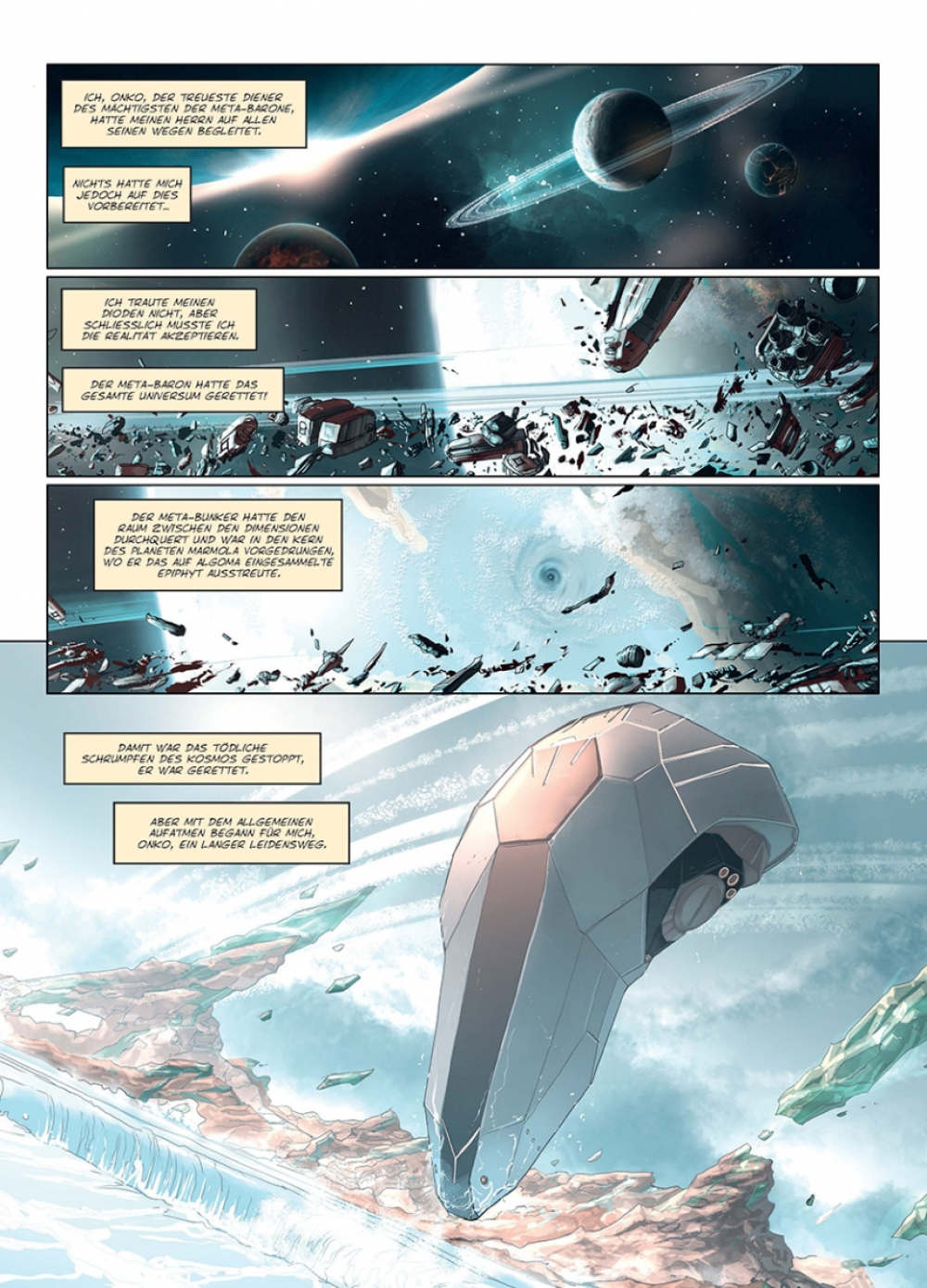 Im wichtigsten SF-Comicereignis der 80er-Jahre, dem »Incal«-Zyklus um John Difool von Moebius und Alexandro Jodorowsky, war er bereits die auffälligste Erscheinung. Die 90er wurden dann sein Jahrzehnt, als eine eigenständige achtteilige Serie seine Herkunft erhellte. Und auch in den Jahren danach schärften einige ergänzende Veröffentlichungen weiter sein Profil. Nun kehrt er zurück: der unerbittlichste, extremste und einsamste Krieger des Universums, der Meta-Baron!