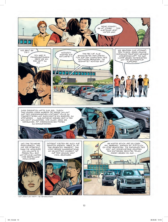 Während Michel Vaillant, Jean-Michel, Patrick und Françoise endlich aus dem Gefängnis entlassen werden, verkündet Senator Warson den Mitgliedern der Demokratischen Partei, dass er nach den Präsidentschaftswahlen die Politik verlassen wird, um sich vollständig dem Motorsport zu widmen.