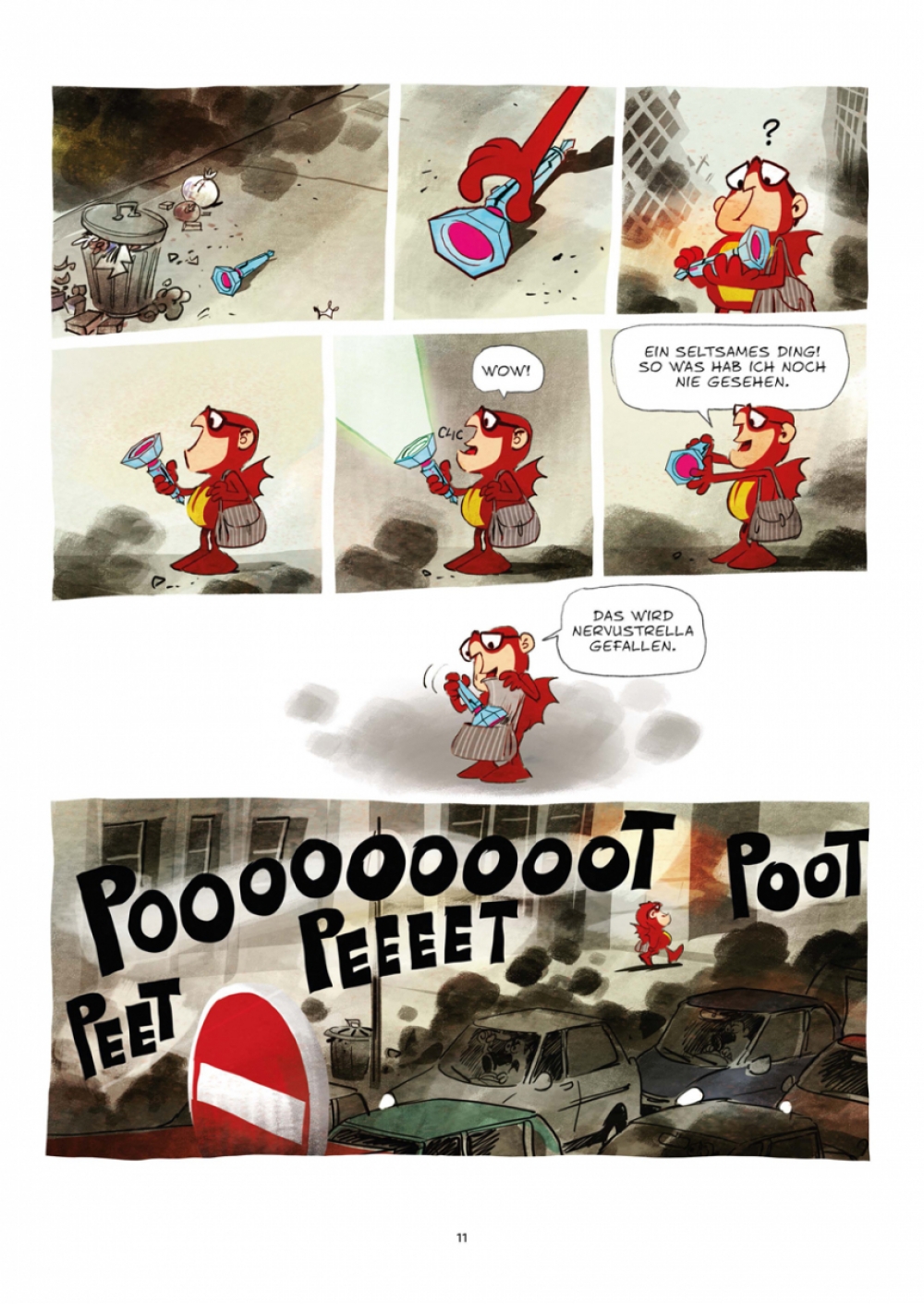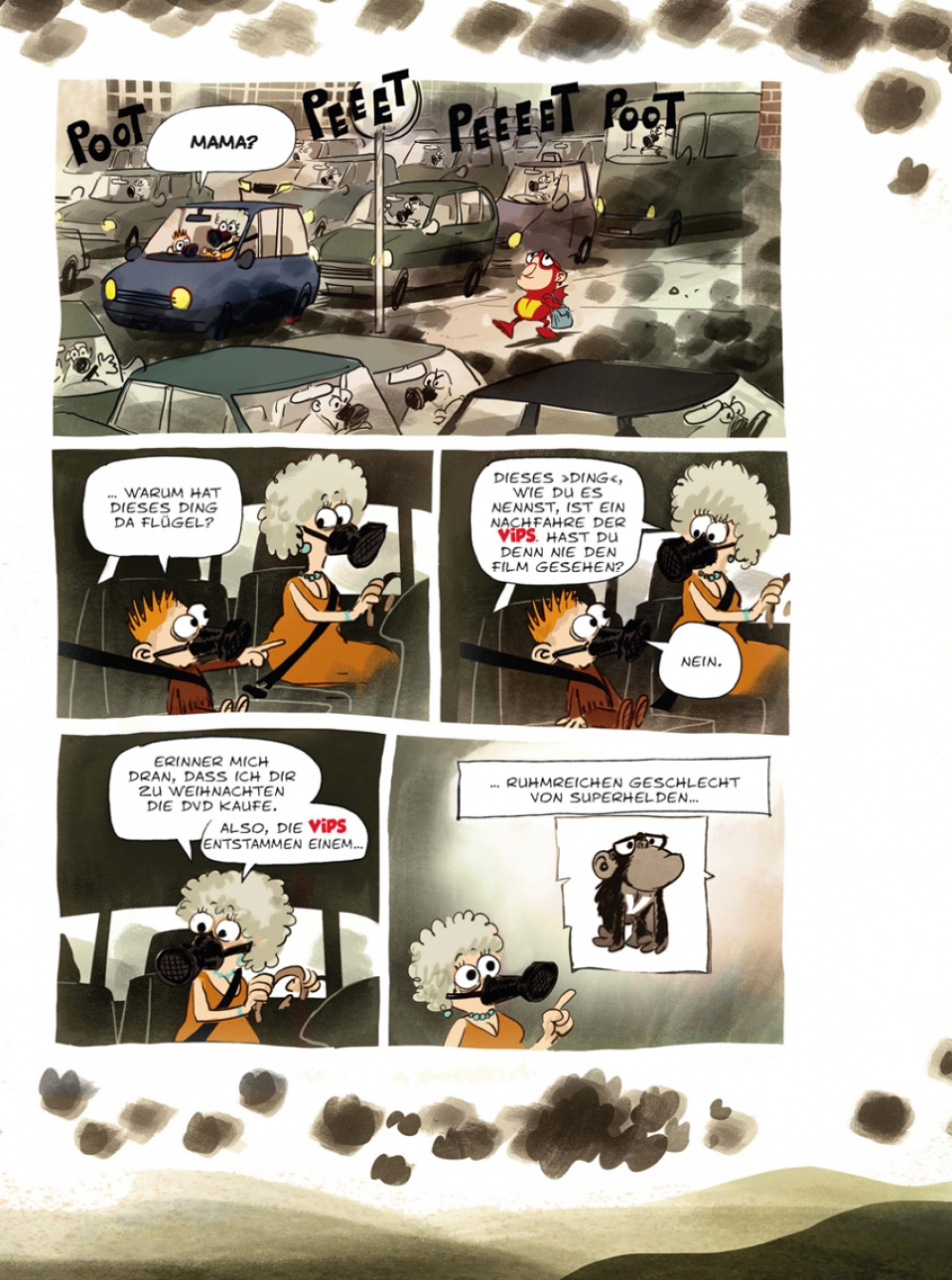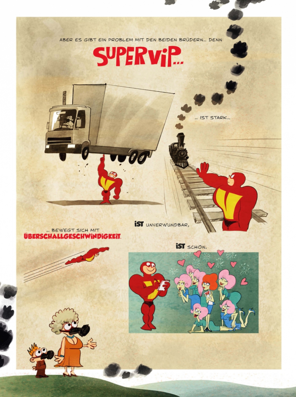 Der Spaß, den Grégory Panaccione beim Umsetzen des abgedrehten Szenarios von Bruno Bozzetto hatte, spricht aus jeder Seite von »Minivip & Supervip«. Ein absurder Einfall jagt den nächsten und wird von makellos getimtem Humor zu einer skurrilen Superhelden-Story zusammengeführt, bei der kein Auge trocken bleibt – auch bei niedriger Feinstaubbelastung.