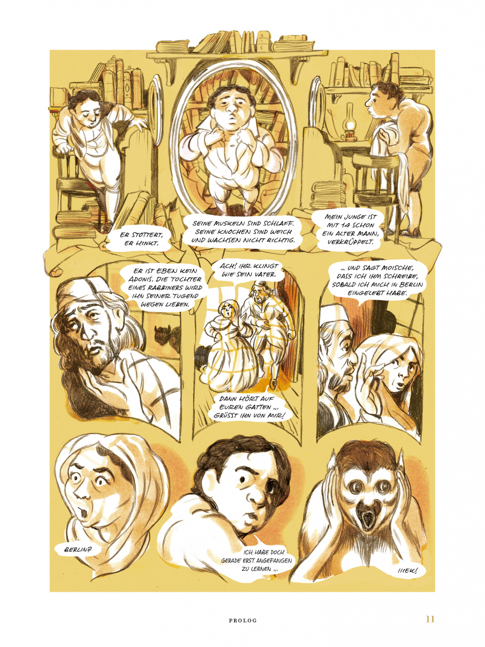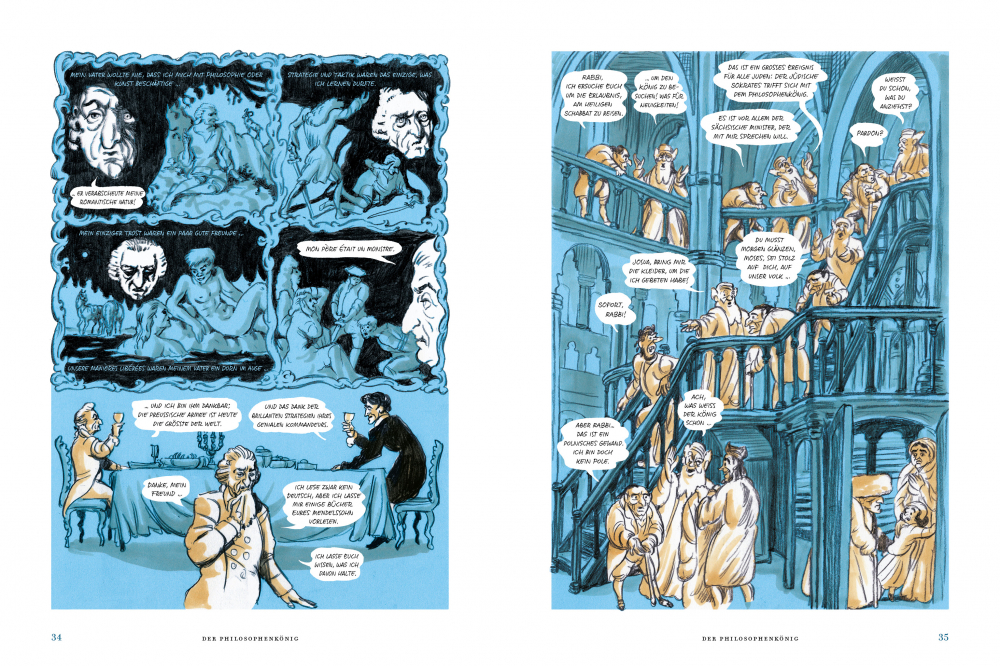 „Lernen Sie Moische kennen, den ‚Sokrates von Berlin‘, einen der brillantesten Köpfe, den diese Welt je gekannt hat. Als kleiner, buckliger, schüchterner und stotternder Mann beeindruckte Moses Mendelssohn (1729-1786) seine Zeitgenossen mit seinem Witz, der elegante Stil seines Schreibens, seine Freundlichkeit und Diplomatie.