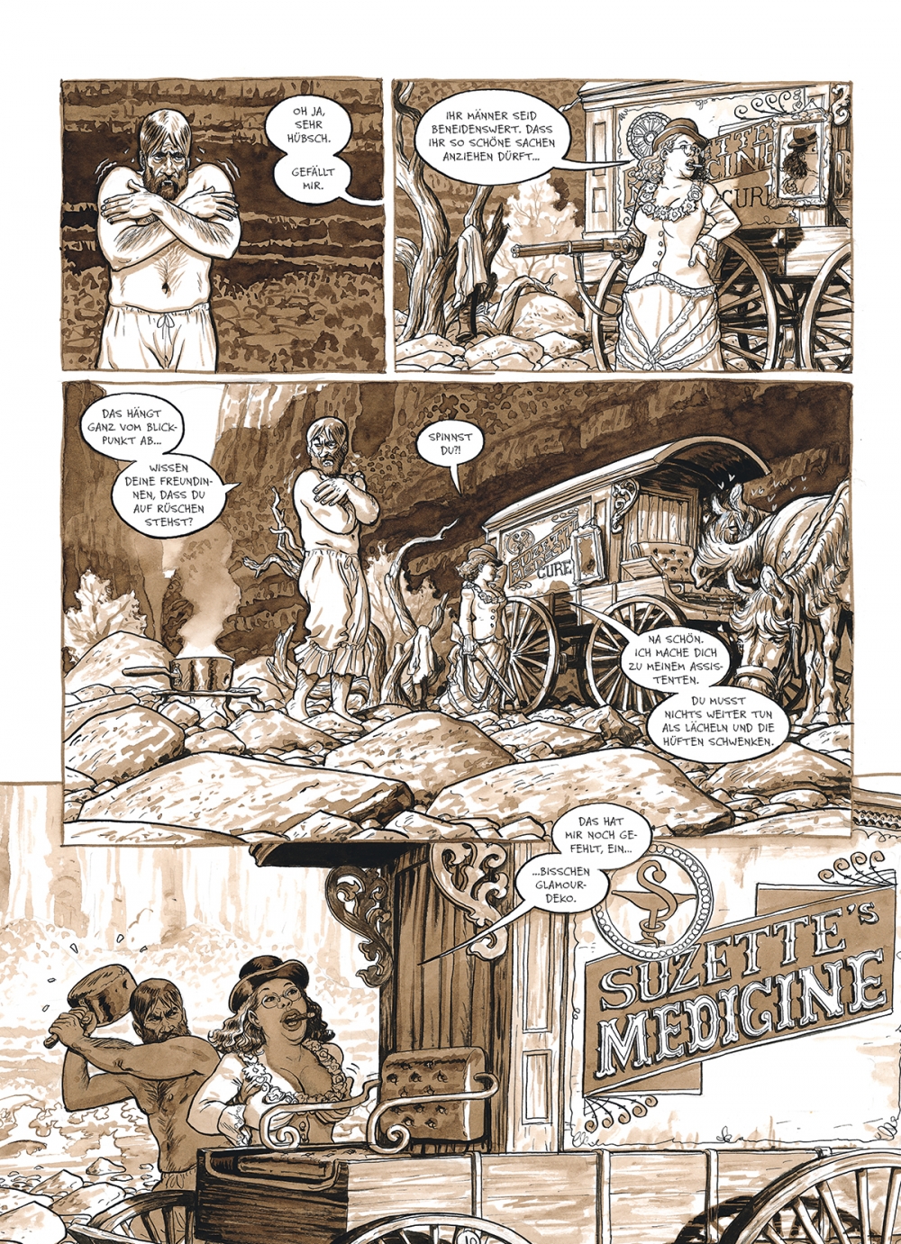 Wo der Westen wirklich wild ist, haben die Frauen das Sagen und die Männer häkeln Spitzendeckchen. Hier trifft die Desperada Cornelia den hübschen, entlaufenen Hausmann Lindbergh. Gemeinsam durchstreifen sie das schöne Arizona und testen die Absurditäten des Genderwahns aus.