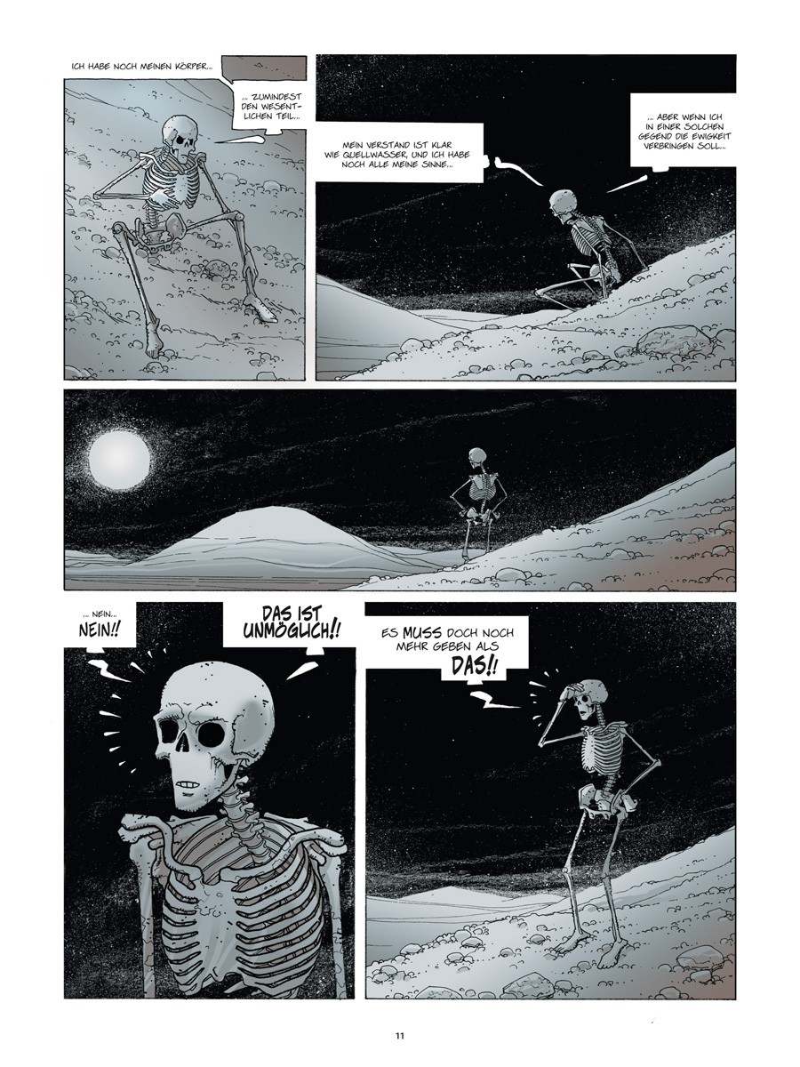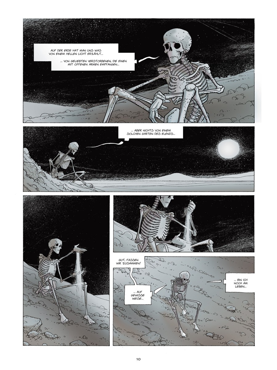 Es herrscht Totenstille, keine Seele lässt sich blicken. Zwar erfreut sich Victor in seiner neuen Gestalt noch seines vollen Bewusstseins, doch von seinem Körper sind nur noch die Knochen geblieben. Hagard Mardi Gras Descendres, so lautet sein Name von nun an, hat keine Ahnung, dass er am Beginn eines der verrücktesten Abenteuer steht, das einem Verstorbenen in der jenseitigen Welt jemals widerfahren ist …