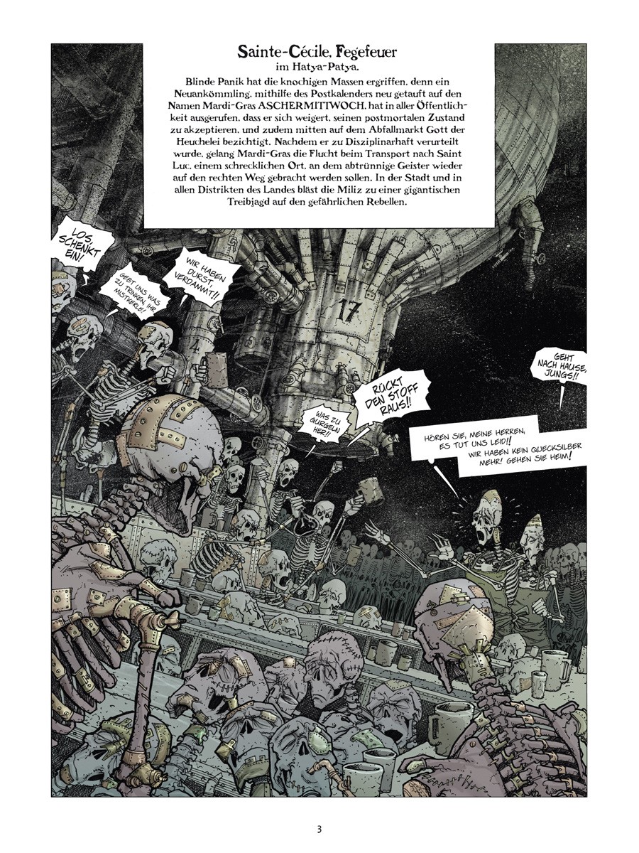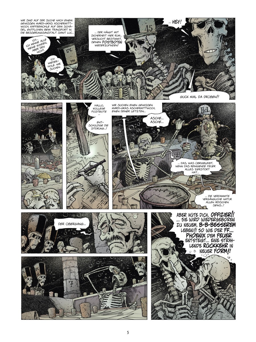 Es herrscht Totenstille, keine Seele lässt sich blicken. Zwar erfreut sich Victor in seiner neuen Gestalt noch seines vollen Bewusstseins, doch von seinem Körper sind nur noch die Knochen geblieben. Hagard Mardi Gras Descendres, so lautet sein Name von nun an, hat keine Ahnung, dass er am Beginn eines der verrücktesten Abenteuer steht, das einem Verstorbenen in der jenseitigen Welt jemals widerfahren ist …