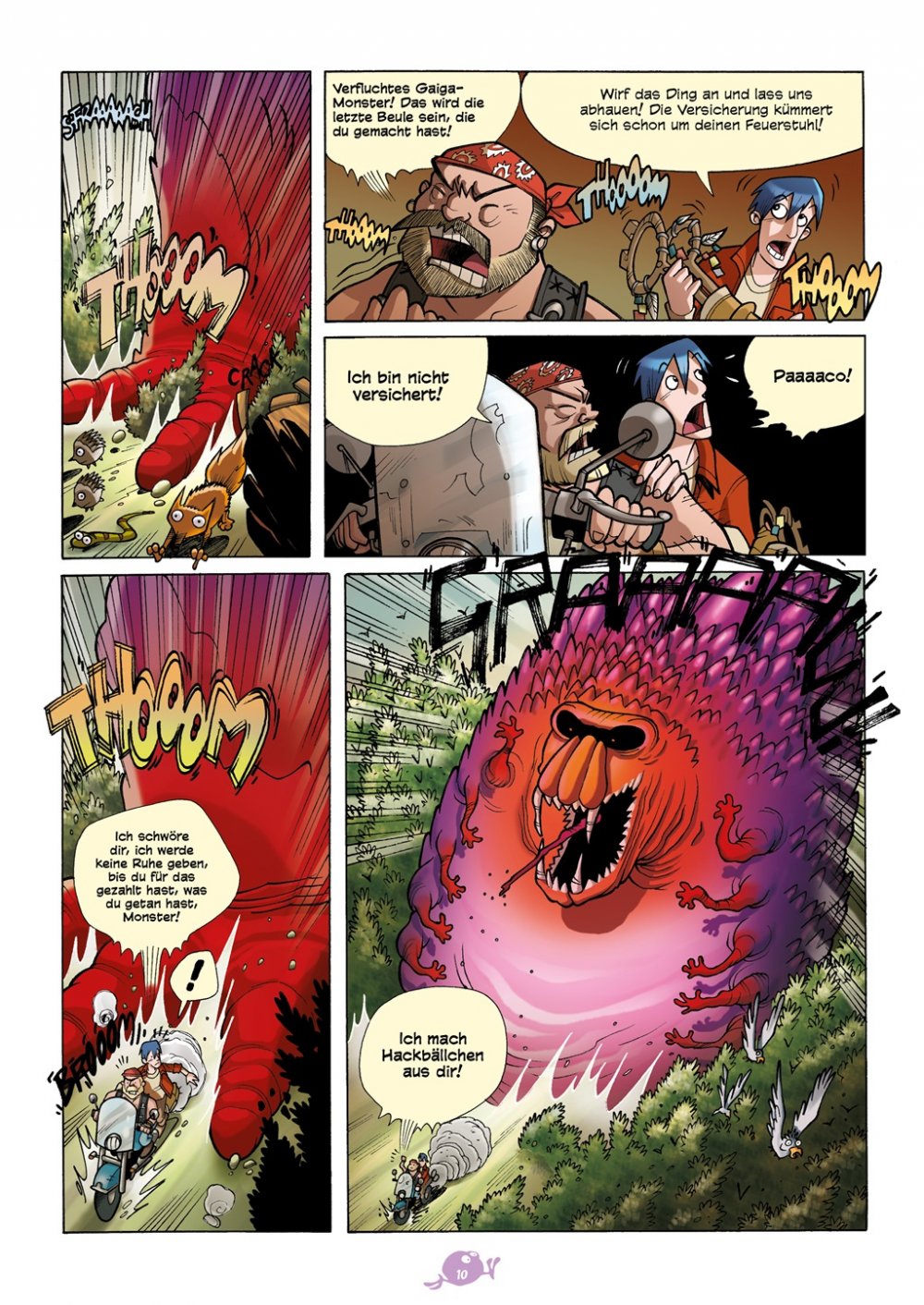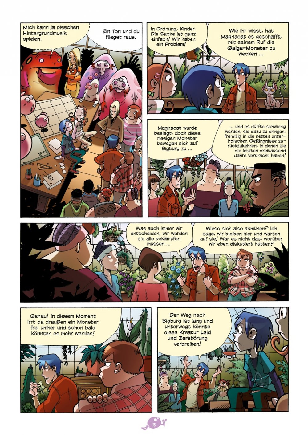 Ein Angriff der Gaiga-Monster trifft die schwebende Stadt völlig unvorbereitet. Können die Bändiger sie noch aufhalten, bevor es zu spät ist? Was hat ein verschwundener Bändiger mit den Überfällen auf Bankfilialen in Bigburg zu tun? Wie geht es eigentlich den Theatermonstern im Leuchtturm? Und in welcher Verbindung stehen Pilze und Kastanien zu Zicks Familie?