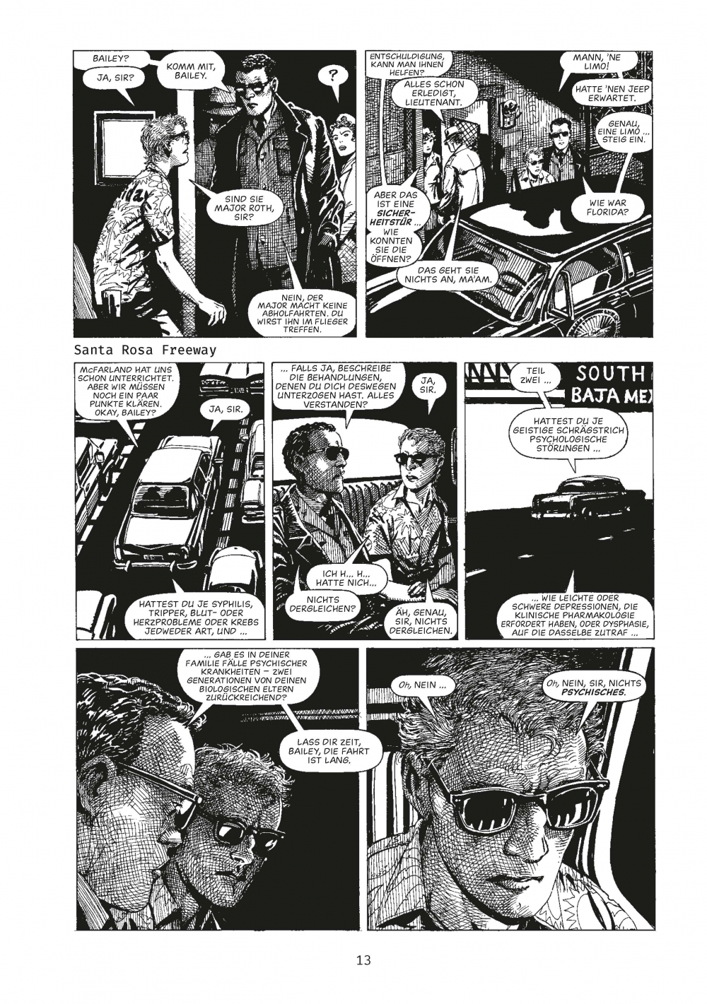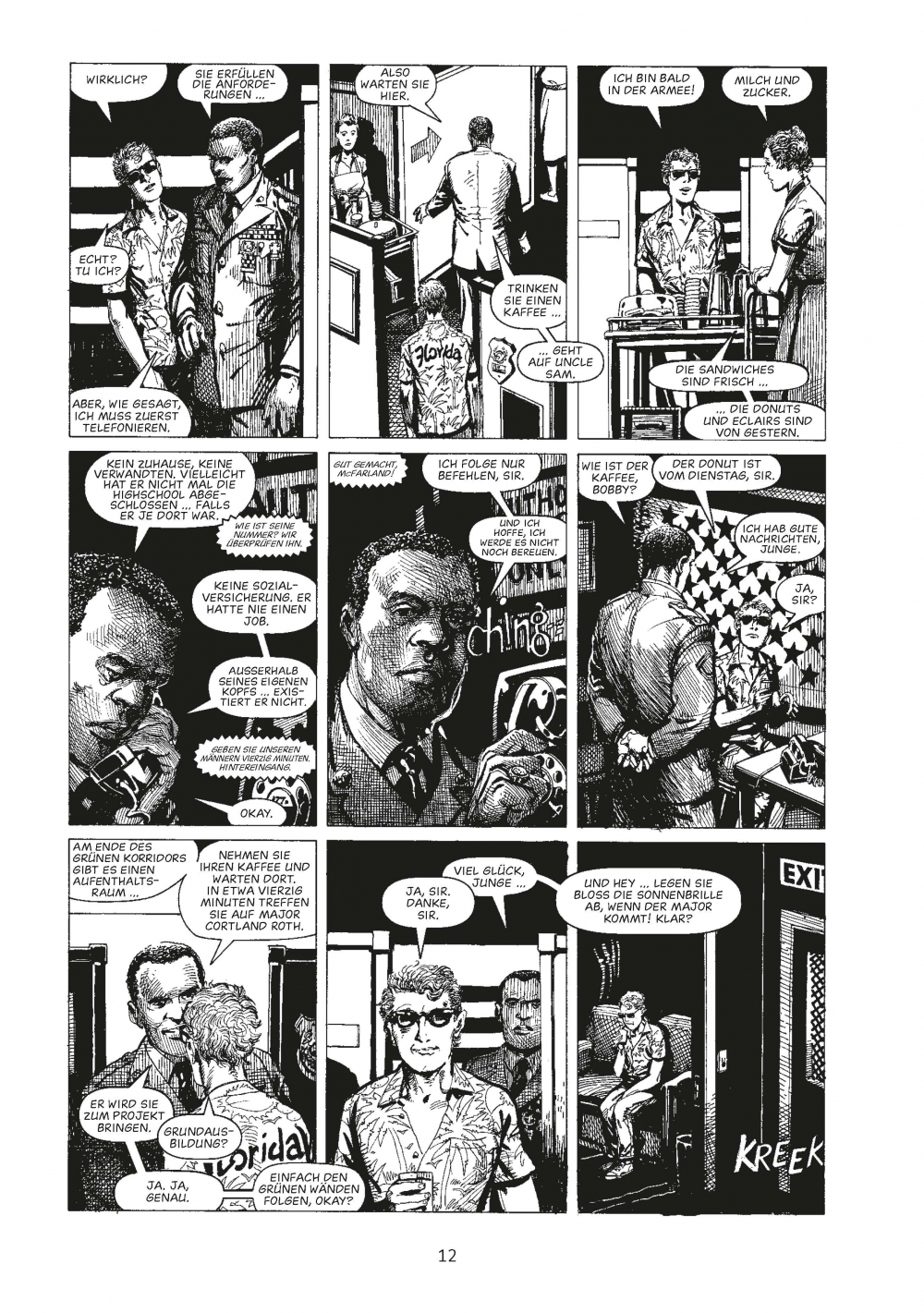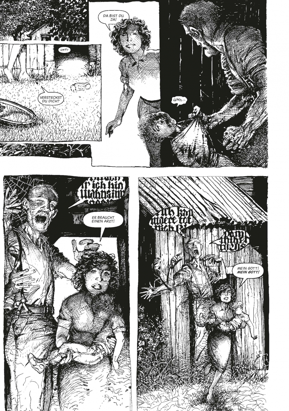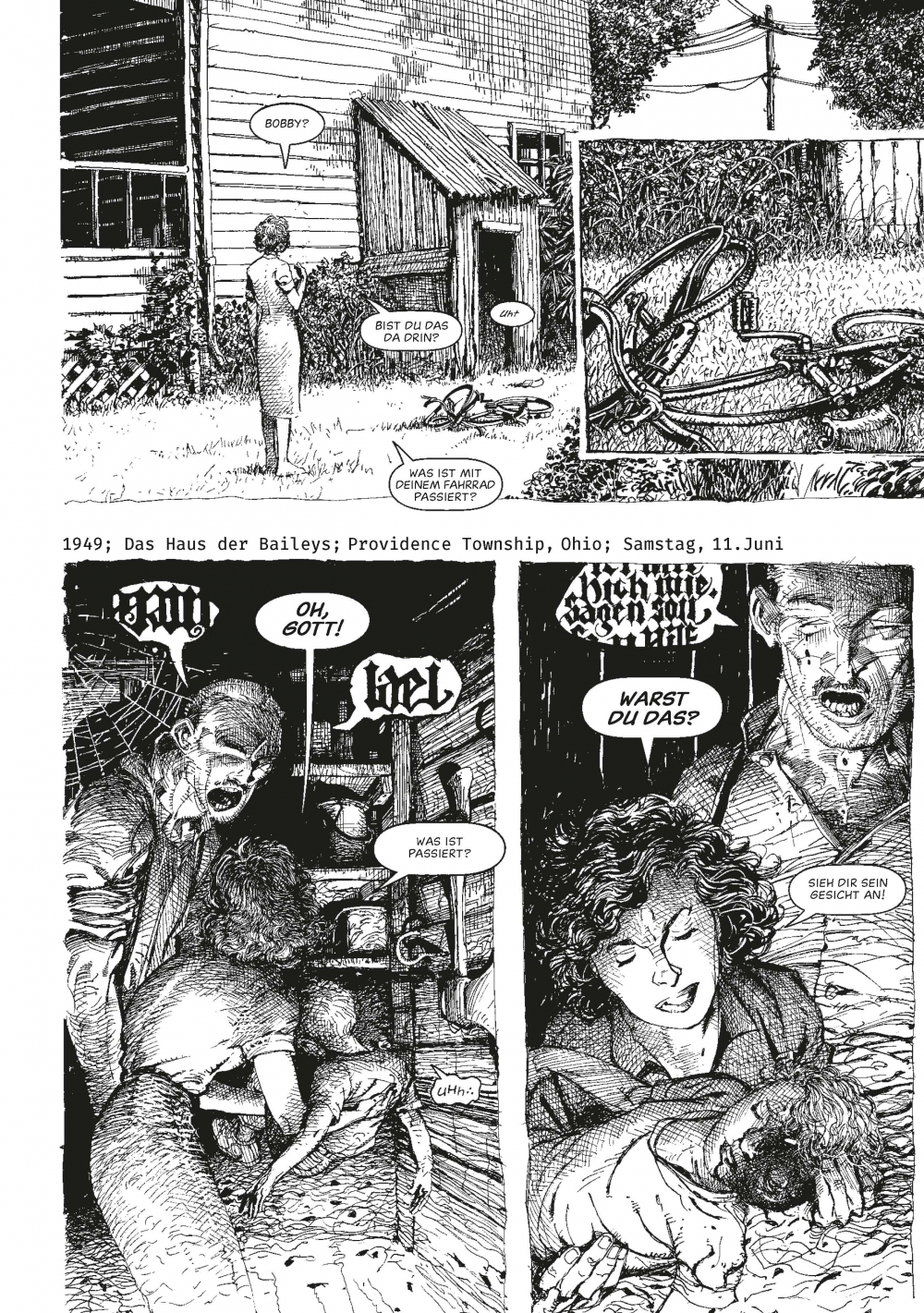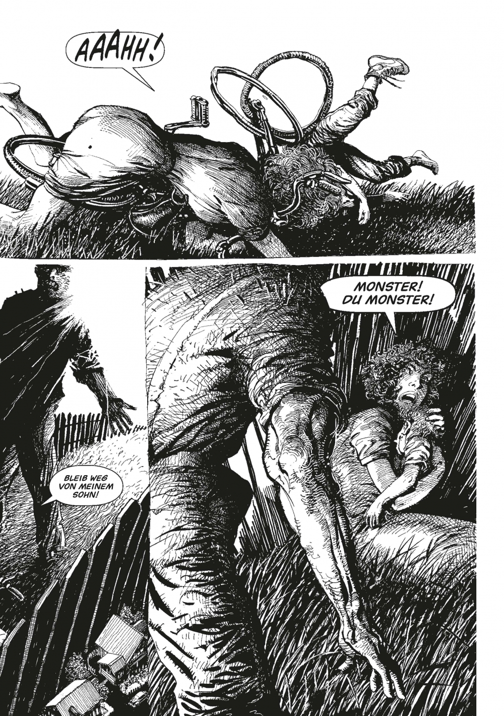 35 Jahre der Entstehung. Die wohl am meisten erwartete Graphic Novel unserer Zeit: MONSTER. Eine 360-seitige Tour de Force des visuellen Erzählens. Teils Familiendrama, teils Thriller, teils metaphysische Reise – ein intimes Porträt von Individuen, die darum kämpfen, ihr Leben zurückzuerobern. Eine gewaltige politische Odyssee, die sich über zwei Generationen amerikanischer Geschichte erstreckt. Wir schreiben das Jahr 1964. Bailey ahnt nicht, dass er gerade im Begriff ist, sein tragisches Schicksal zu besiegeln, als er ein Rekrutierungsbüro der US-Armee betritt. Verschlossen, beschädigt, unschuldig – auf der Suche nach einer Vergangenheit und Zukunft zugleich. Kurzum: Bobby ist der perfekte Kandidat für ein geheimes Experiment der US-Regierung ... die entsetzliche, gottlose Fortsetzung eines Programms für Genetik, das fast 20 Jahre zuvor in den letzten Tagen des Zweiten Weltkriegs in Nazi-Deutschland seinen Anfang fand. Sergeant McFarland, Baileys einziger Verbündeter und Beschützer, greift ein, als eine Kette von Ereignissen in Gang gesetzt wird, die sich der Kontrolle aller Beteiligten entreißt. Während sich die Monster vermehren – ob real oder metaphorisch – münzt diese Geschichte in einem Crescendo der moralischen Abrechnung. Monsters trägt Barry Windsor-Smiths (CONAN DER BARBAR, RED SONJA) Handschrift tadelloser Feder- und Tuschetechnik. Die visuelle Erzählung ist mit ihrer Sensibilität für Gestik und Komposition das wohl anspruchsvollste Werk in der Karriere des Windsor-Smiths. Wir stoßen auf Passagen von herzzerreißender Zärtlichkeit, von unerträglichem Schmerz ... von Erlösung und Aufopferung ... von verheerender Gewalt – eine der wohl intensivsten Graphic Novels, die jemals gezeichnet wurden.