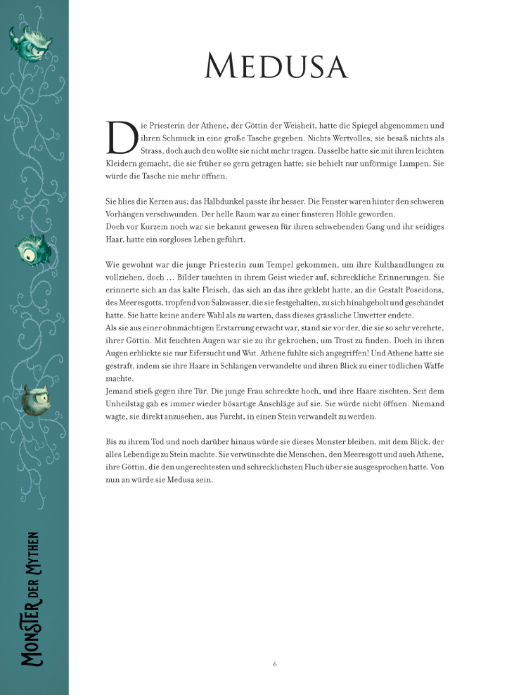 Monster bevölkern seit Jahrhunderten die Träume und Alpträume der Welt. Dieses Buch stellt verschiedene Arten von Monstern vor – mythologische wie Medusa oder Hræsvelgr, japanische Monster, Freaks, die im 19. Jahrhundert im Zirkus vorgeführt wurden, die berühmtesten fiktiven Monster wie Quasimodo, Mr. Hyde, Frankensteins Kreaturen und viele mehr. Außerdem erfahren wir – teils in dokumentarischen Texten – von der Erschaffung und den Eigenschaften der Monster, von ihren Attributen, ihren Lebensräumen und den Spuren, die sie hinterlassen … Ein wahrlich gruseliger Augenschmaus!