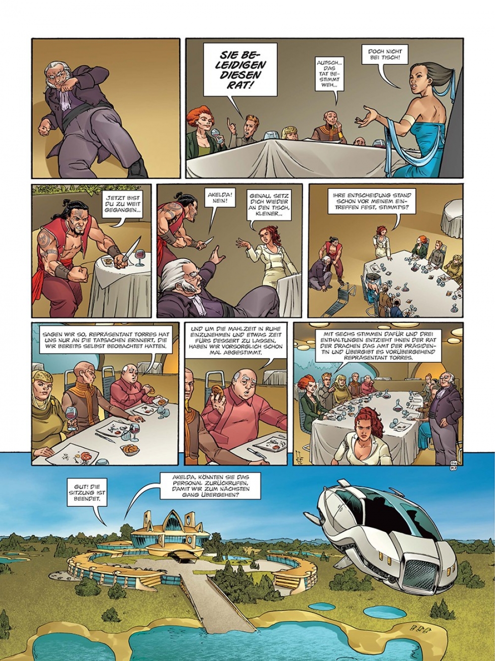 Dort geht der mörderische Kampf mit unverminderter Härte weiter. Die erste Runde ging jedoch klar an Morea und ihre Freunde, und nicht zuletzt dank ihrer Ressourcen als potente Wirtschaftslenkerin haben die Drachen nun erstmals die Chance, selber in die Offensive zu gehen. Aber die alten Feinde schlafen nicht, und sie bekommt es zudem mit neuen Gegnern zu tun, wie etwa einer Fraktion fanatischer Drachen, die sich gegen ihre Pläne stellen. Abgesehen davon, braucht sich eine Top-Managerin nie um mangelnden Widerspruch zu sorgen. Um sich zu behaupten, muss Morea also erneut alle Register ziehen. Genau wie ihre Schöpfer Scotch Arleston und Dominique Latil als Autoren sowie – neu dabei – Laurent Libessart am Zeichenstift. Auch sie geizen nicht mit ihren Reizen, ganz wie ihre Heldin. Die perfekte Mischung aus Fantasy, SF und einer kräftigen Dosis Wirtschaftskrimi.