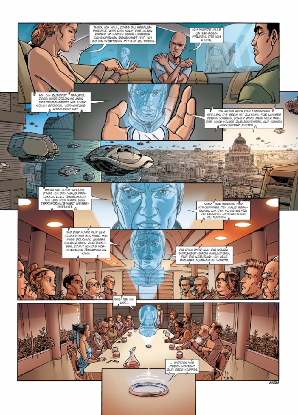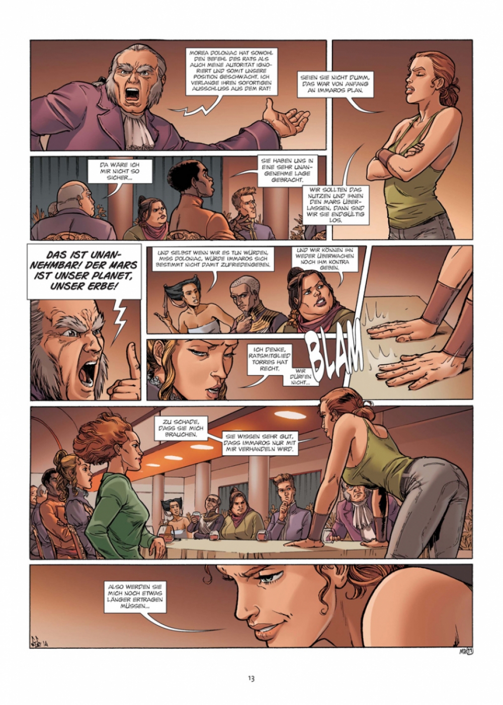 Dort geht der mörderische Kampf mit unverminderter Härte weiter. Die erste Runde ging jedoch klar an Morea und ihre Freunde, und nicht zuletzt dank ihrer Ressourcen als potente Wirtschaftslenkerin haben die Drachen nun erstmals die Chance, selber in die Offensive zu gehen. Aber die alten Feinde schlafen nicht, und sie bekommt es zudem mit neuen Gegnern zu tun, wie etwa einer Fraktion fanatischer Drachen, die sich gegen ihre Pläne stellen. Abgesehen davon, braucht sich eine Top-Managerin nie um mangelnden Widerspruch zu sorgen. Um sich zu behaupten, muss Morea also erneut alle Register ziehen. Genau wie ihre Schöpfer Scotch Arleston und Dominique Latil als Autoren sowie – neu dabei – Laurent Libessart am Zeichenstift. Auch sie geizen nicht mit ihren Reizen, ganz wie ihre Heldin. Die perfekte Mischung aus Fantasy, SF und einer kräftigen Dosis Wirtschaftskrimi.