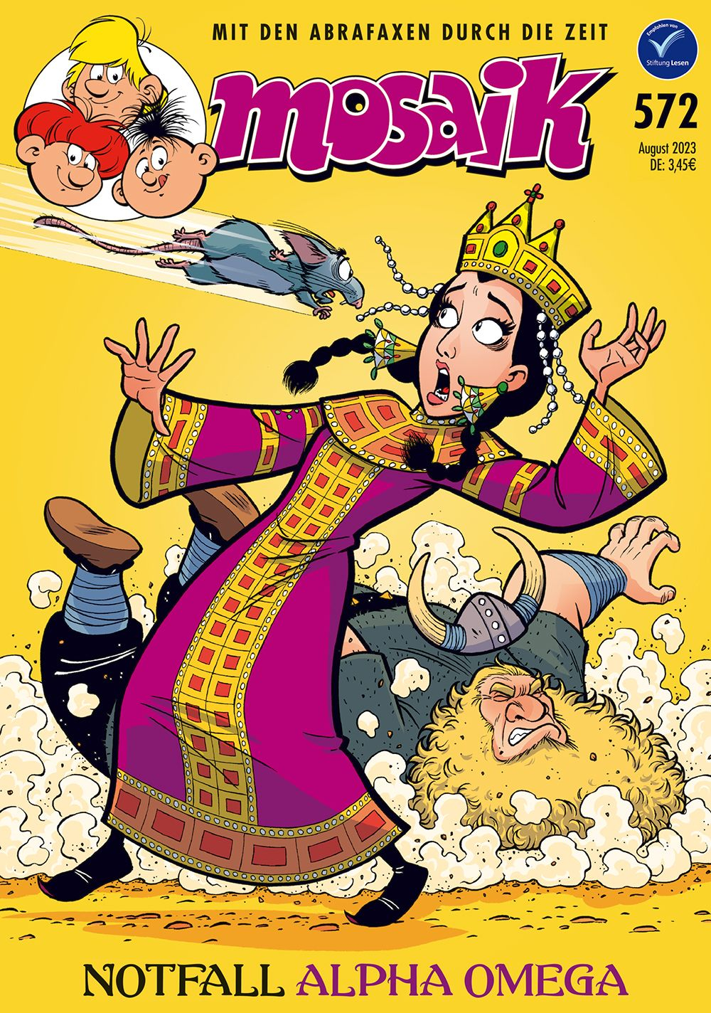 Nach dem Feiern kommt der Kater ... Ach, Quatsch, Moment, in diesem Fall kommt die Ratte. Angeflogen! Und auch noch mitten ins Gesicht der Kaiserin Irene, während ihr neues Lieblingshaustier, der Elefant Abul Abbas, erst mächtig beim Festumzug randalierte und dann plötzlich verschwunden ist. Wohin genau und was die Abrafaxe eventuell damit zu tun haben, erzählt dieses MOSAIK