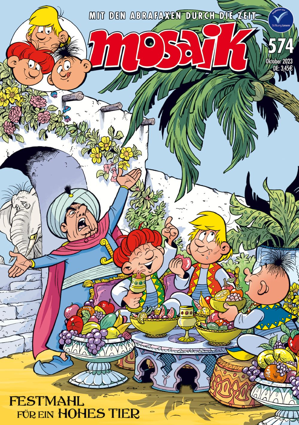 Während die Abrafaxe in Susa überlegten, auf welche Weise sie den Elefanten aus dem Zugriff des Emirs befreien konnten, erreichten Thomas und Tomas Venedig. Von dort aber mussten sie noch ans Festland gelangen, um schließlich Kaiser Karl davon zu überzeugen, ein Schiff nach Susa zu schicken – damit es dort seinen Elefanten abholte. Was Thomas und Tomas in Venedig erreichen, wie Lela versucht, ihren byzantinischen Verfolgern zu entkommen und warum der Emir den Abrafaxen die köstlichsten Speisen vorsetzt, erfahrt ihr in diesem MOSAIK.