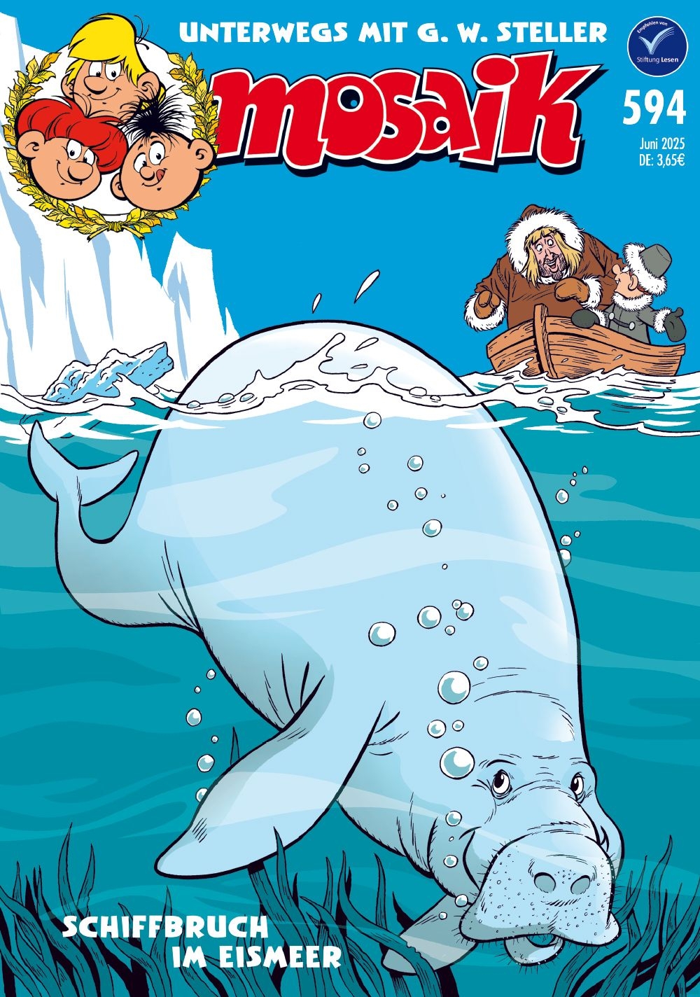 In diesem MOSAIK geht es auf große Expeditionsreise in den Nordpazifik. Warum Kapitän Vitus Bering froh ist, den Naturforscher Georg Wilhelm Steller an seiner Seite zu haben, welche unglaublichen Tiere den Abrafaxen im hohen Norden begegnen und ob die Abenteurer tatsächlich das sagenumwobene Gamaland finden, das erfahrt ihr in diesem Heft.
