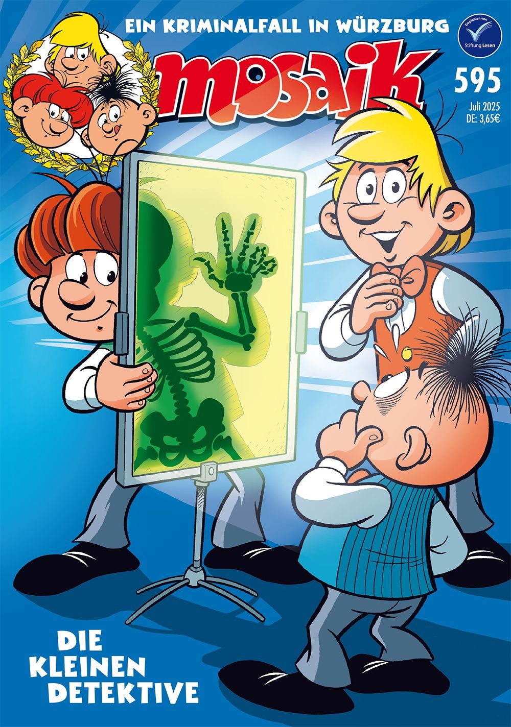 In diesem MOSAIK müssen die Abrafaxe als kleine Detektive einen Kriminalfall lösen und treffen dabei den Physiker Wilhelm Conrad Röntgen. Der hatte zu diesem Zeitpunkt gerade die nach ihm benannte elektromagnetische Strahlung entdeckt ...