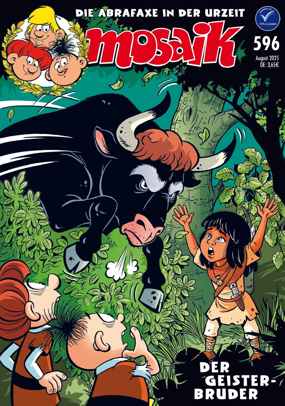 In diesem MOSAIK müssen sich Brabax und Califax als Jäger und Sammler bewähren, aber selbst die kleine Ya'Nuuk ist ihnen schon haushoch überlegen. Was genau unsere Vorfahren vor 9.000 Jahren auf jeden Fall besser konnten, ob das Steinzeitmädchen ihren Geisterbruder findet und warum die Schamanin ihres Stammes die Welt der Geister, Ahnen und Menschen versöhnen muss, das erfahrt ihr in diesem Heft.
