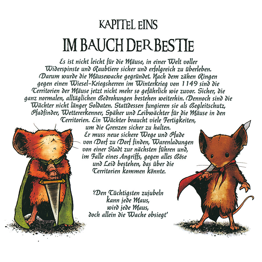 Wo kein Feind zu klein ist, um nicht auch ein großer Gegner zu sein, müssen die Mäuse der Wache besondere Größe zeigen. In jedem Moment ihres kurzen Lebens.