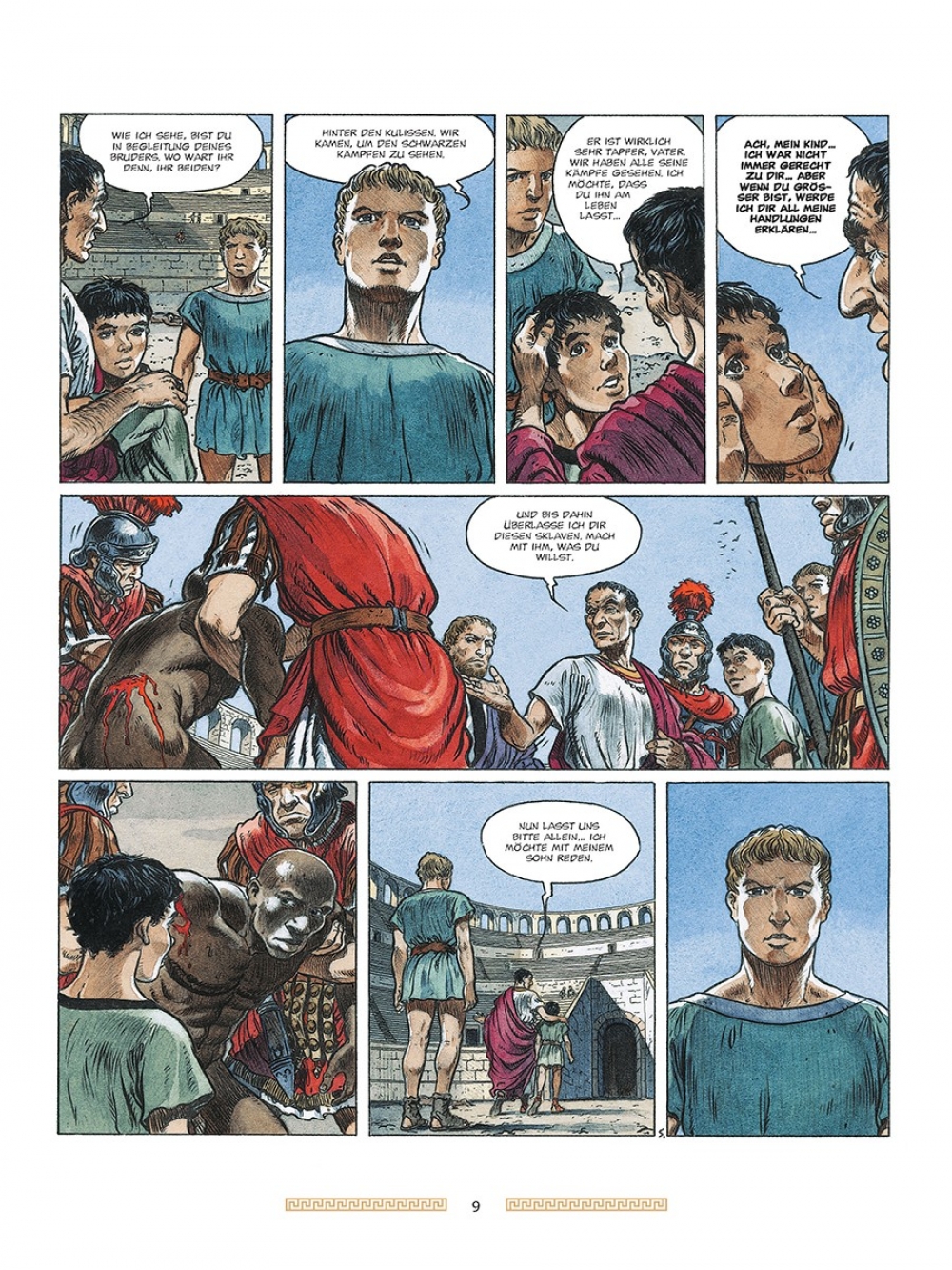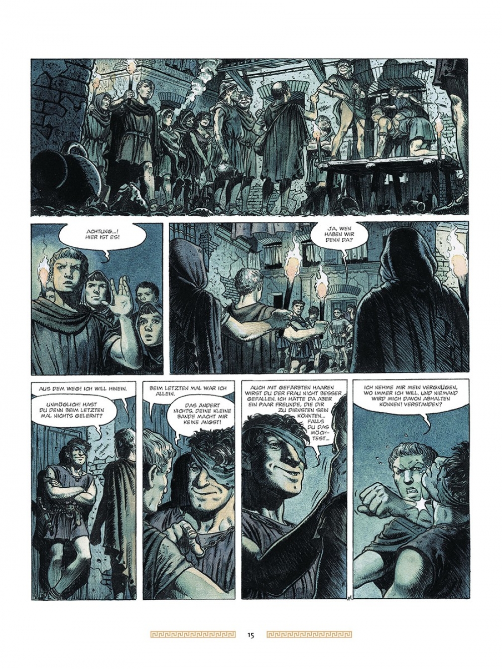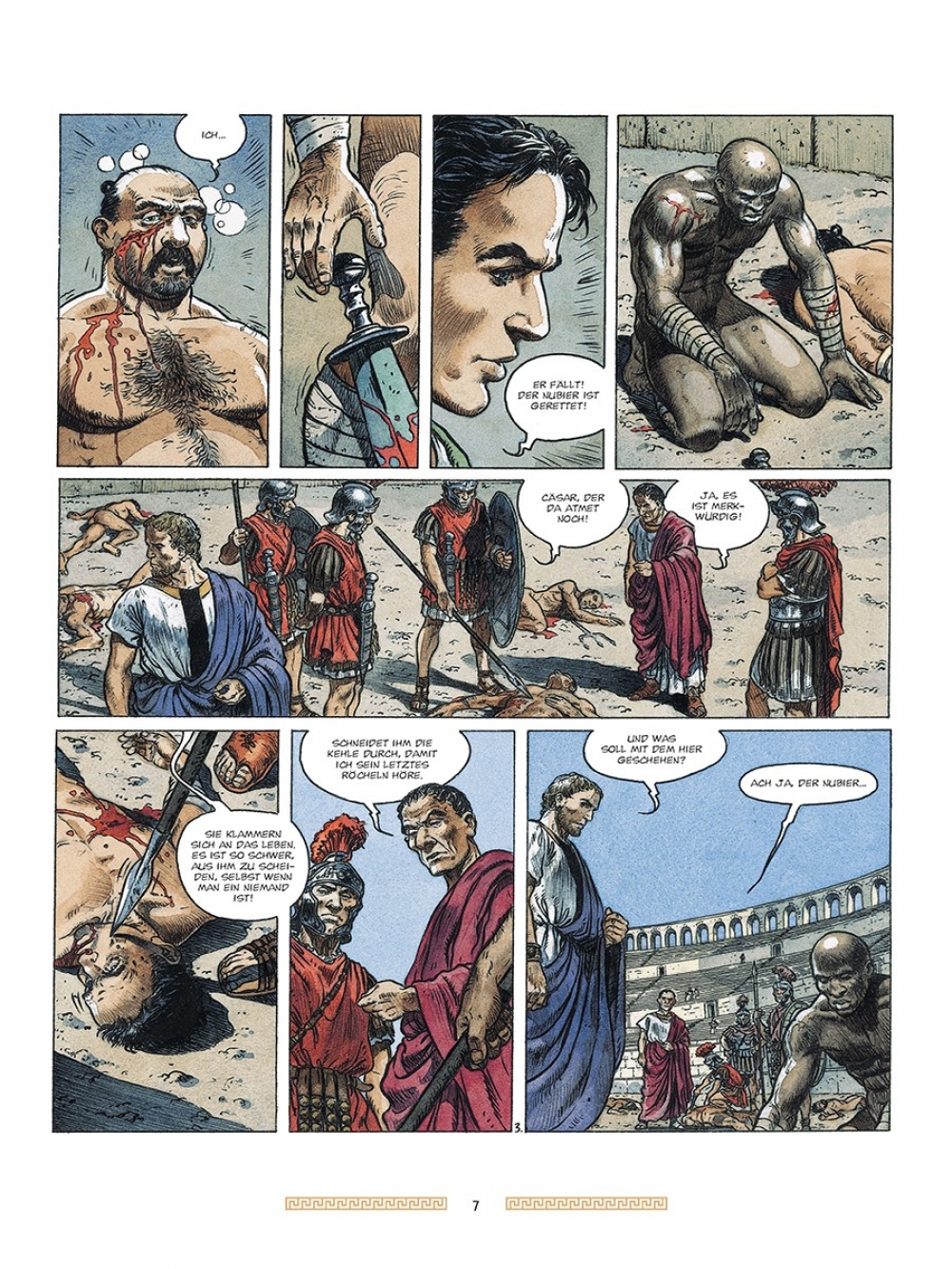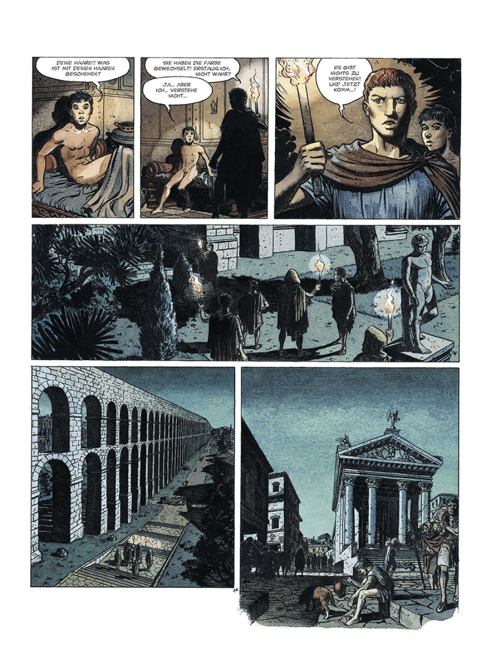 Jean Dufaux (»Giacomo C.«, »Kreuzzug«, »Conquistador« etc.) und Philippe Delaby (»Die Ritter des verlorenen Landes«) haben exakt dieses düster schillernde Kapitel der römischen Kaiserzeit gewählt, um mit »Murena« ein packendes historisches Drama zu inszenieren, das geschickt geschichtliche Fakten und Fiktion miteinander verwebt. Im Mittelpunkt steht neben Nero vor allem der gleichaltrige Lucius Murena, mit ersterem anfangs durchaus befreundet. Er gerät jedoch schon früh in die tödlichen Intrigen bei Hofe und wird so zum erbitterten Gegner Neros, der mehr und mehr dem Cäsarenwahn verfällt. Das alles präsentieren Dufaux und Delaby vor einem detaillierten Panorama der antiken Lebenswelt, penibel recherchiert und akribisch umgesetzt. Und nebenbei geben sie auch noch eine Antwort darauf, wer nun Rom wirklich angezündet hat. Und warum. Schon heute ein Klassiker des History-Comics.