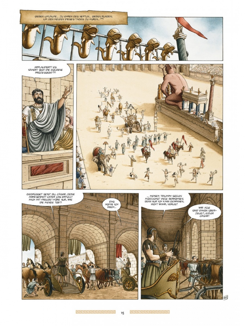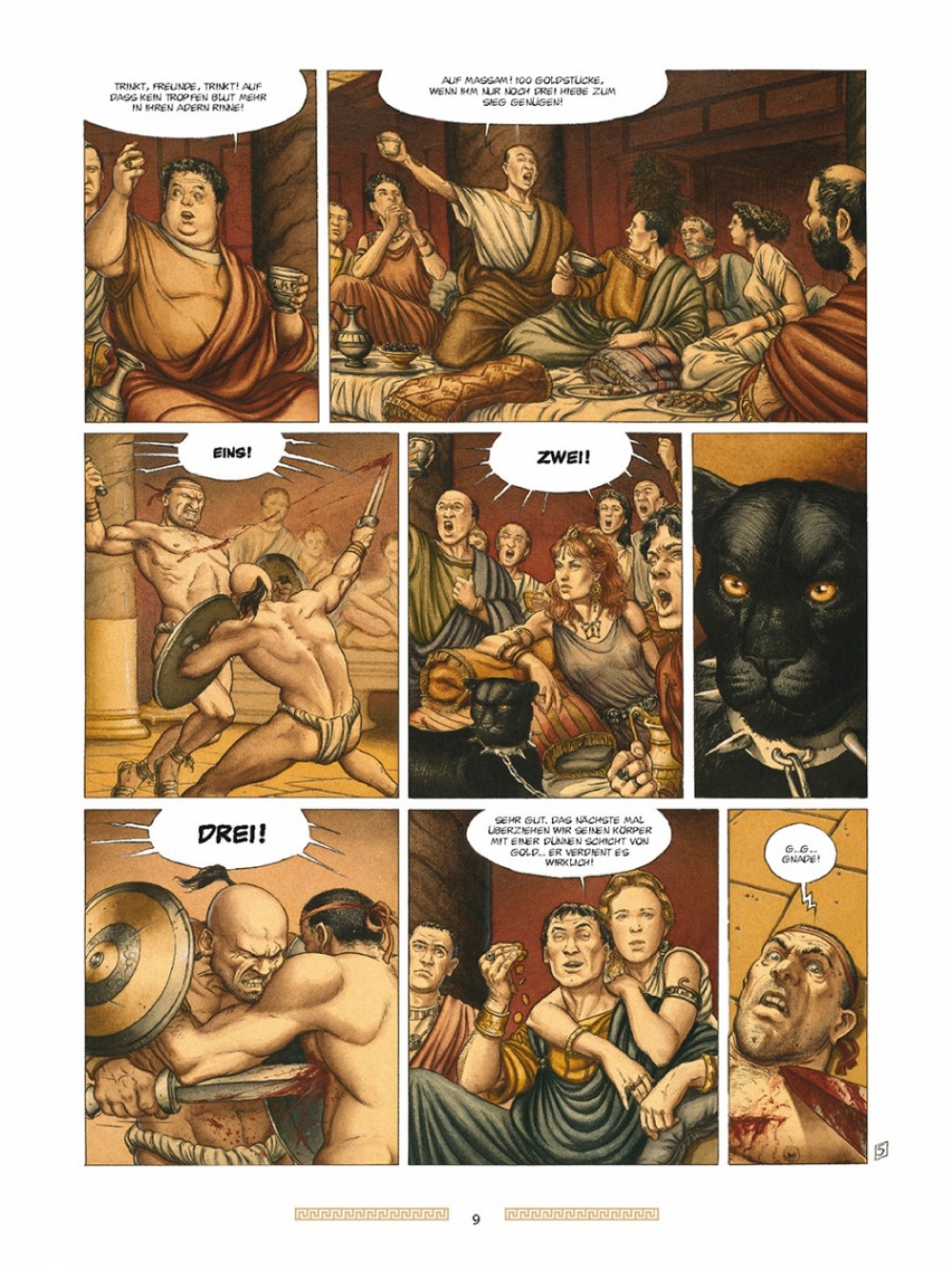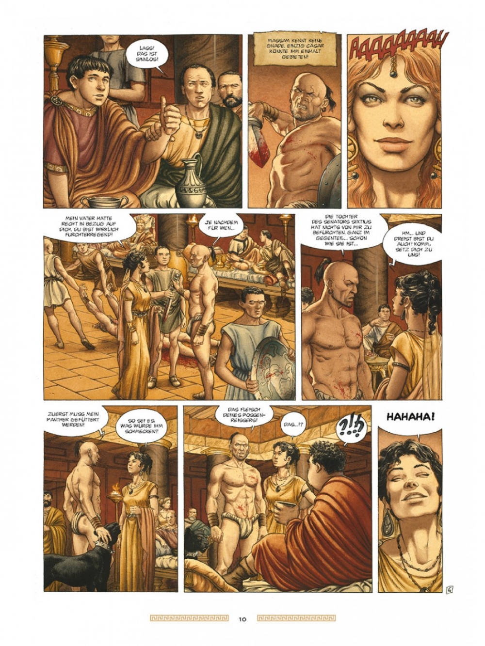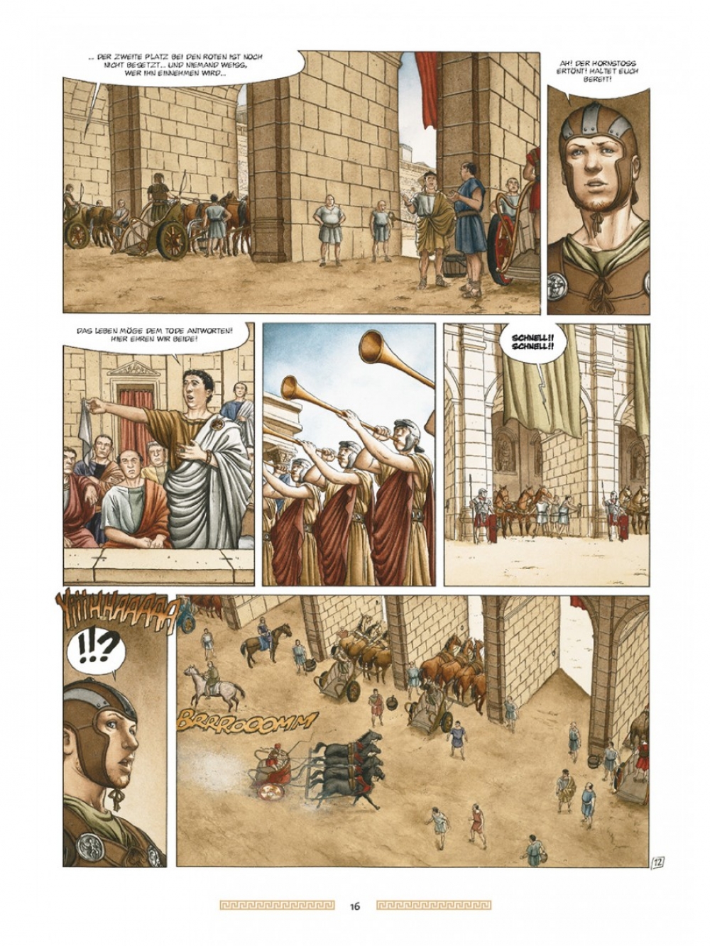 Jean Dufaux (»Giacomo C.«, »Kreuzzug«, »Conquistador« etc.) und Philippe Delaby (»Die Ritter des verlorenen Landes«) haben exakt dieses düster schillernde Kapitel der römischen Kaiserzeit gewählt, um mit »Murena« ein packendes historisches Drama zu inszenieren, das geschickt geschichtliche Fakten und Fiktion miteinander verwebt. Im Mittelpunkt steht neben Nero vor allem der gleichaltrige Lucius Murena, mit ersterem anfangs durchaus befreundet. Er gerät jedoch schon früh in die tödlichen Intrigen bei Hofe und wird so zum erbitterten Gegner Neros, der mehr und mehr dem Cäsarenwahn verfällt. Das alles präsentieren Dufaux und Delaby vor einem detaillierten Panorama der antiken Lebenswelt, penibel recherchiert und akribisch umgesetzt. Und nebenbei geben sie auch noch eine Antwort darauf, wer nun Rom wirklich angezündet hat. Und warum. Schon heute ein Klassiker des History-Comics.