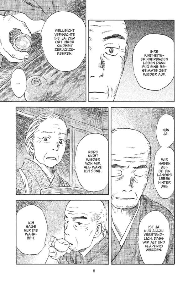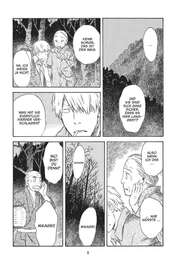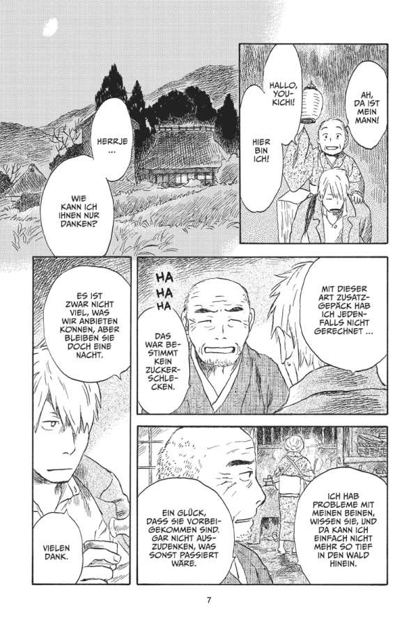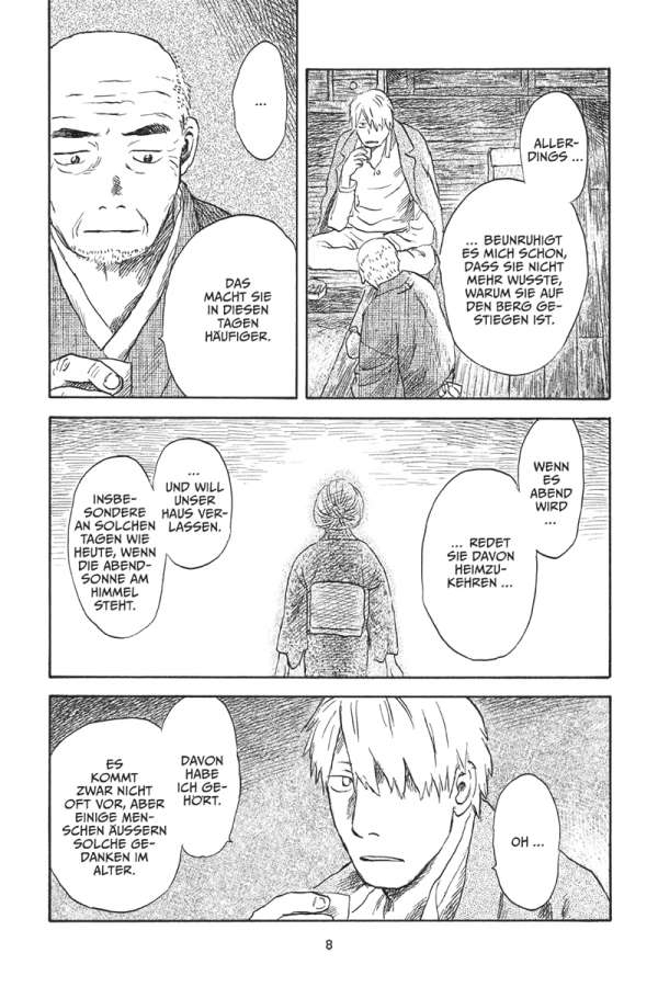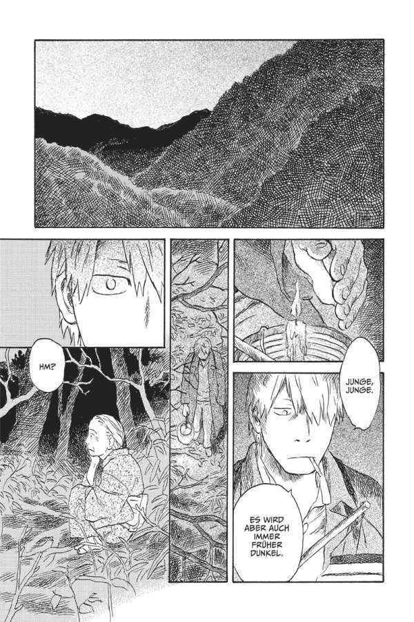 Die Welt ist voller rätselhafter Wesen, Bedrohung und Wunder zugleich. Weder Tier noch Pflanze, leben sie eng im Einklang mit der Natur. Nur die wenigsten Menschen können sie sehen oder wissen um ihre Existenz. Man nennt sie: „Mushi“. Jeden Abend, wenn die Sonne hinter den Bergen verschwindet und die Welt in strahlendes Rot taucht, läuft eine alte Frau in die Wälder. Gefangen in den Erinnerungen an ihre Kindheit sucht sie nach jenem Ort, den sie einst ihr Zuhause nannte. Doch niemand außer Ginko ahnt, dass ihre Heimat jenseits dieser Welt liegt …