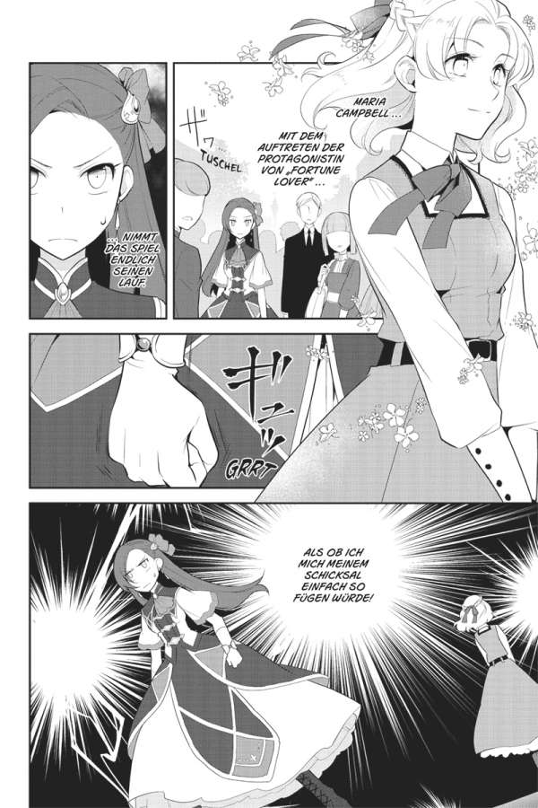 Catarina Claes führt als Tochter eines Herzogs ein sorgloses Leben. Sie ist reich, verwöhnt und unsterblich verliebt. Nichts kann dieses Glück trüben … zumindest, bis sie sich den Kopf anschlägt und feststellt, dass sie als Antagonistin in einem Dating Game wiedergeboren wurde! Und als wäre das alles nicht genug, ist für Catarina kein Happy End vorgesehen: Tod oder Exil warten am Ende ihres Weges. Klar, dass Catarina sich das nicht so einfach gefallen lässt. Deswegen setzt sie nun alles daran, ihr eigenes Happy End zu kreieren!