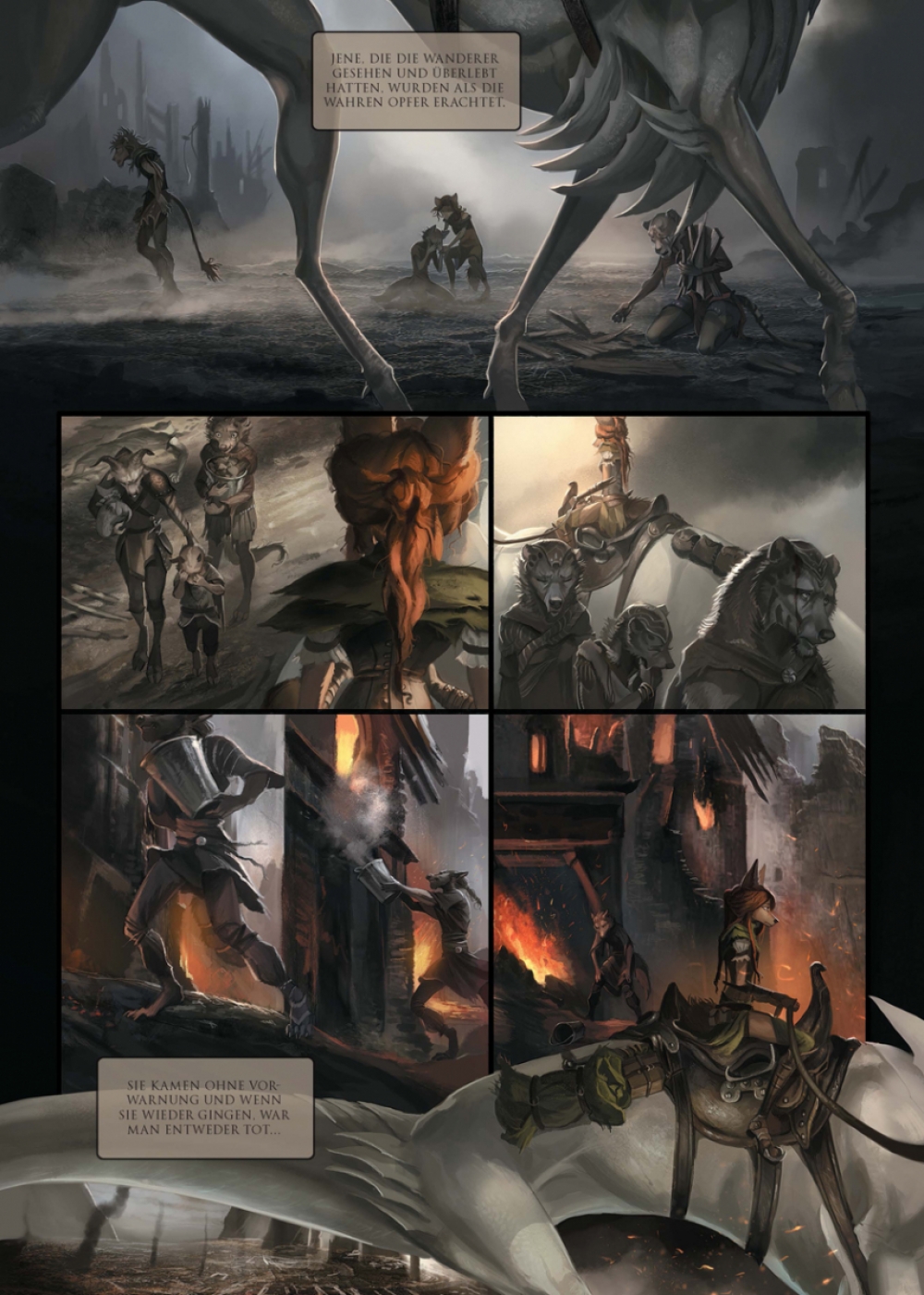 Die harsche Welt von Yria ist voller Geheimnisse. Es gibt Anzeichen, dass Yria nicht immer die zerklüftete Wüste war, die sie heute ist, aber kaum einer ihrer tierähnlichen Bewohner kann sich an diese Vorzeit erinnern. Die Wanderin Myre interessiert sich nicht für Sagen und Geschichten. Begleitet von ihrem Drachen Varug lebt sie von einem Tag zum nächsten, immer auf der Suche nach der nächsten Mahlzeit und dem nächsten Schlafplatz. Aber seinem Schicksal kann man nun mal nicht entkommen, und so befindet sich Myre ehe sie sich versieht auf einer Reise, in deren Verlauf sie in die tiefsten Mysterien Yrias eintauchen wird.
