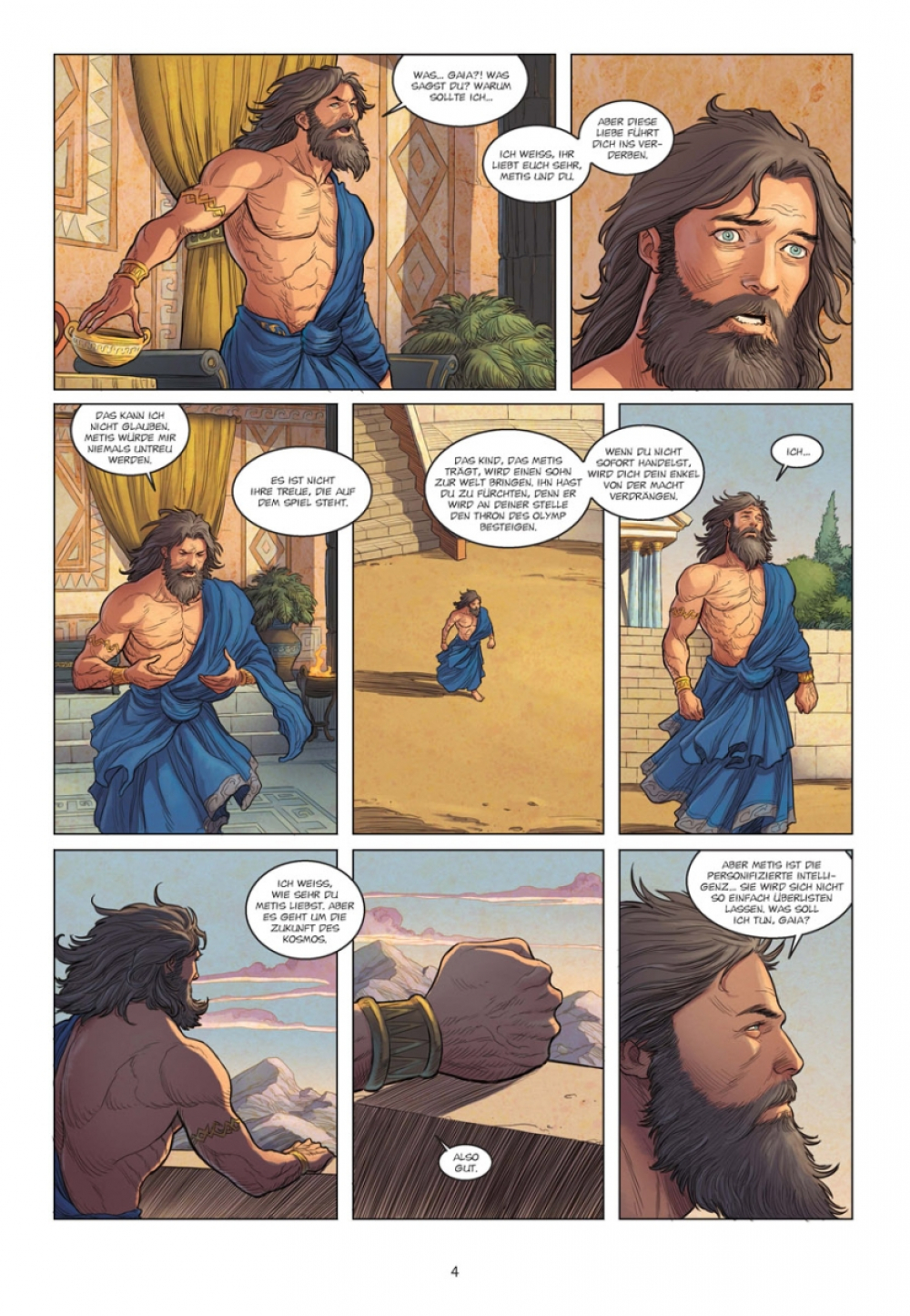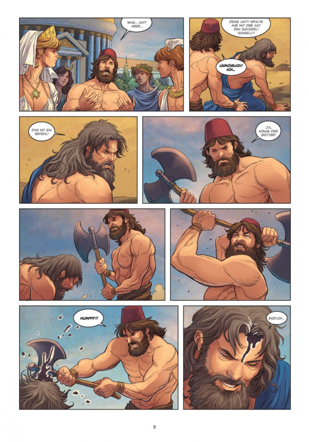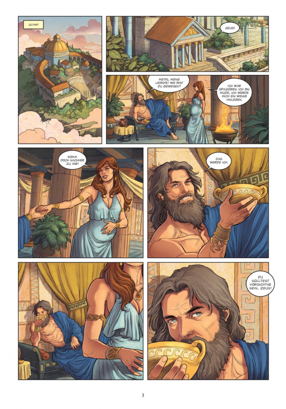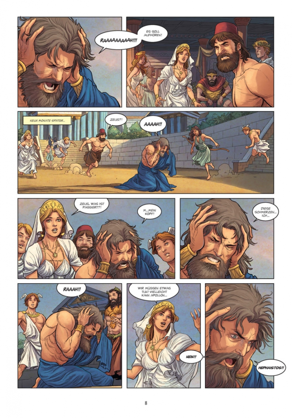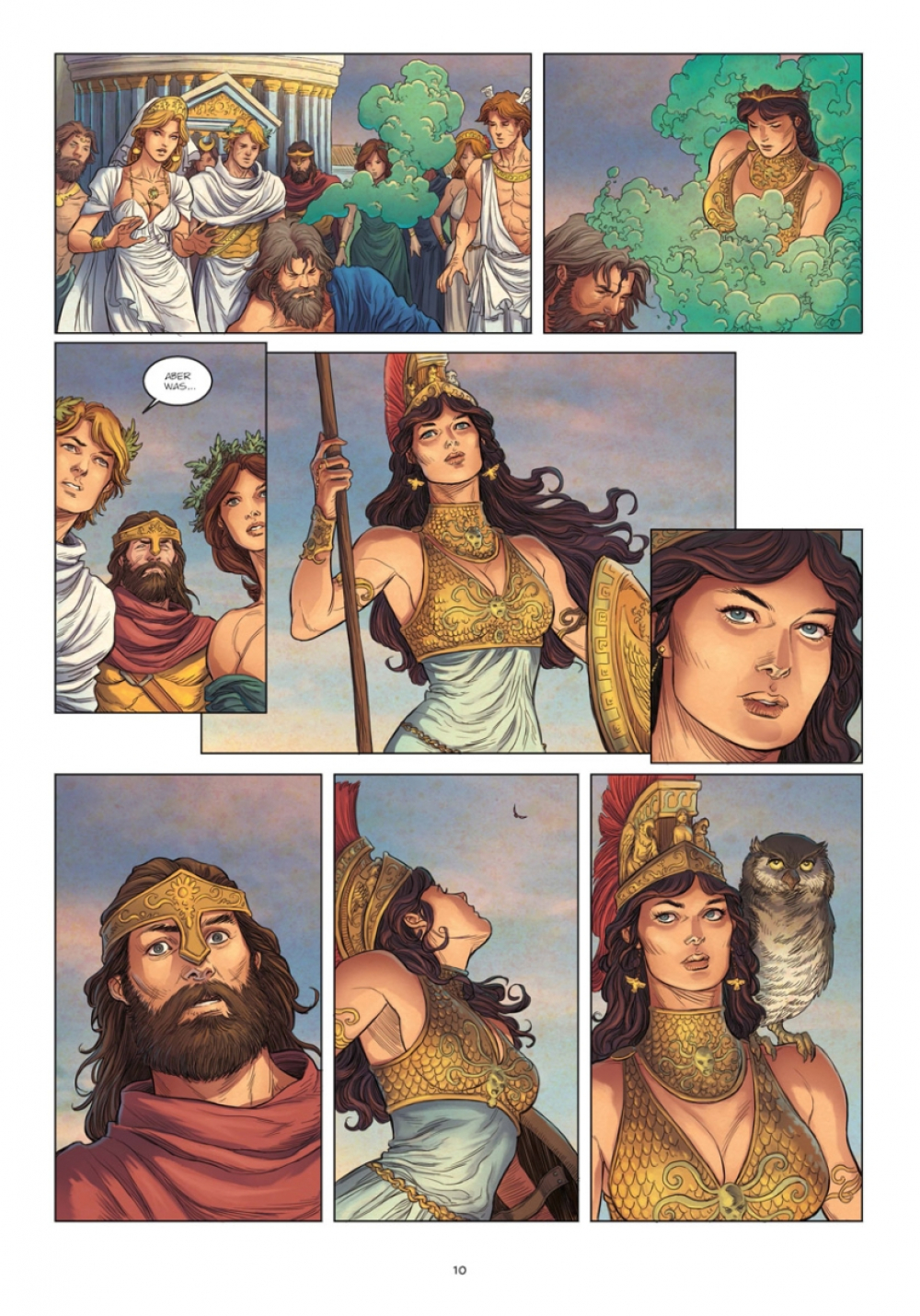 Ein unerträglicher Schmerz, der wie aus dem Nichts kam, plagt Göttervater Zeus. Die Schläge seines Herzens hallen bis in seine Schläfen, das Leid treibt ihn an den Rand des Wahnsinns. In seiner Verzweiflung wendet er sich an Hephaistos, damit dieser ihm den Schädel spaltet, so grausam ist des Königs Martyrium! Der Gott der Schmiedekunst folgt dem Befehl, doch der Schock seines schrecklichen Schlages weicht schnell Erstaunen, denn aus der klaffenden Wunde steigt ein Wesen hervor: Es ist Athena. So beginnt das Leben der weisesten aller Göttinnen, ein Leben, das von erstaunlichen Ereignissen geprägt sein wird...