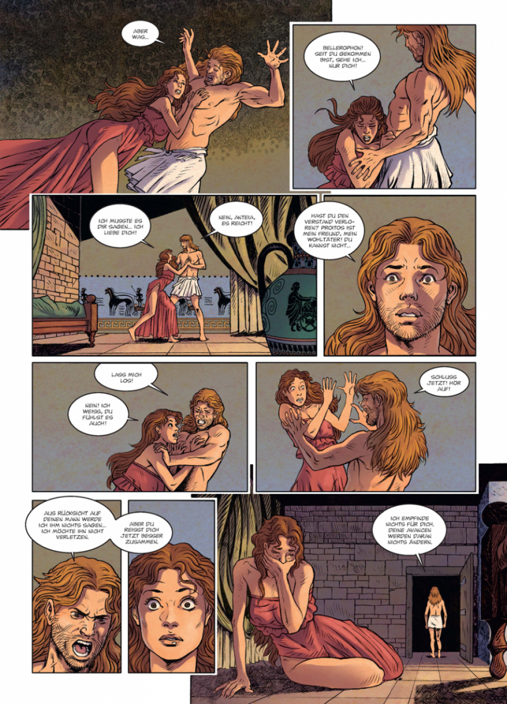 Aus seiner Stadt vertrieben, da er unfreiwillig seinen eigenen Bruder erschlug, findet Bellerophon Zuflucht im Hause von König Proitos in Tiryn. Sein Charme und seine Tatkraft gewinnen ihm schnell das Herz von dessen Frau Anteia, die ihm von ungezügelter Leidenschaft geleitet ihre Liebe gesteht. Als aufrichtiger Mann, der das Gastrecht ehrt, weist Bellerophon sie zurück, doch macht er sich damit die Königin zum Feind. Mit List und Lügen überzeugt Anteia ihren Gatten, den Verbannten auf eine Mission zu entsenden, die den sicheren Tod bedeutet. Doch Mal um Mal schlägt Bellerophon seine immer schrecklicheren Gegner – so oft, dass er bald an seine eigene Göttlichkeit glaubt und meint, seine menschliche Unvollkommenheit hinter sich zu haben. Diese Hybris kann Zeus, der Herrscher des Olymps, nicht dulden...