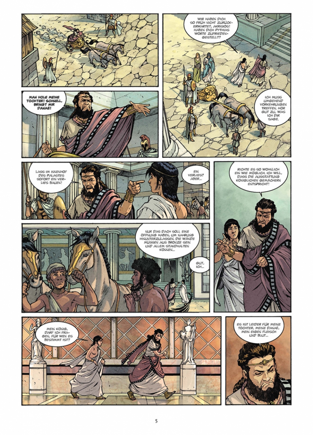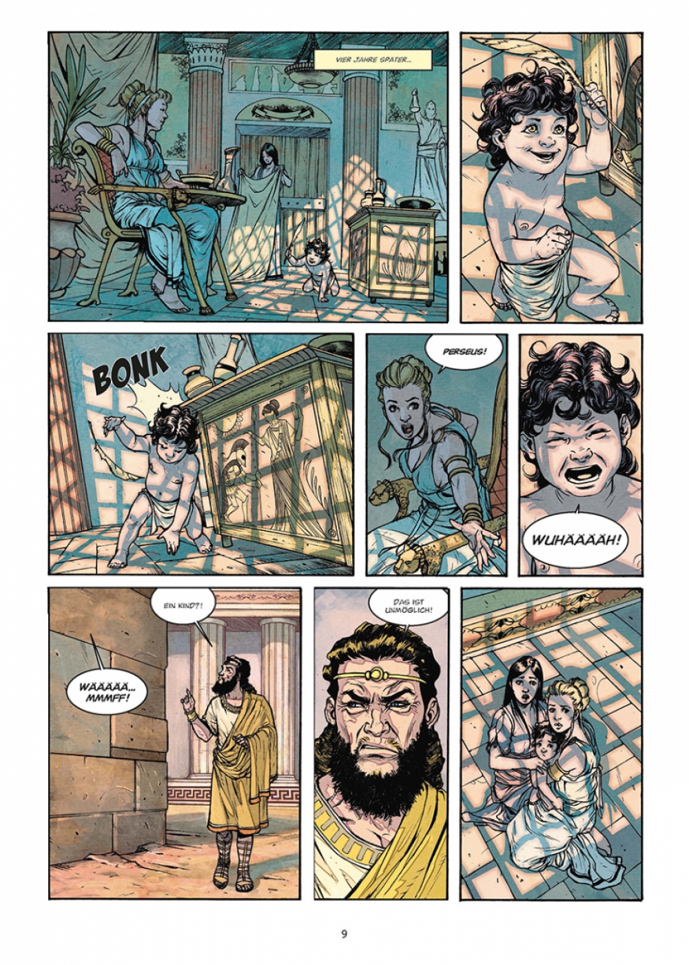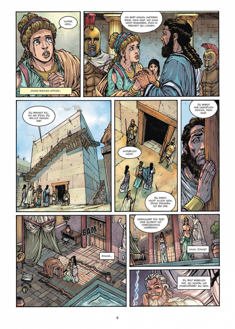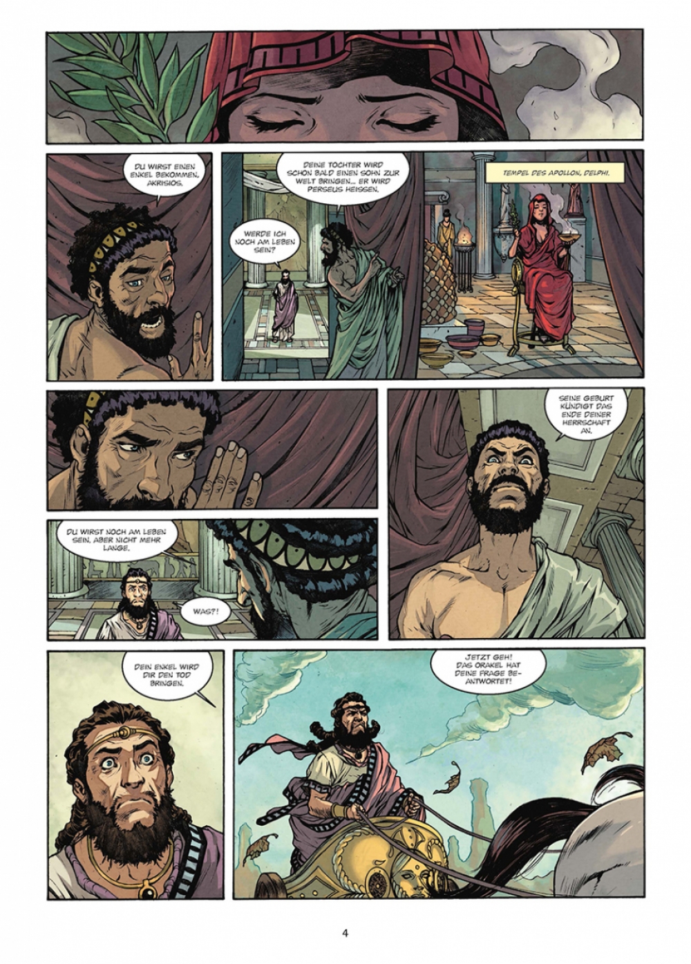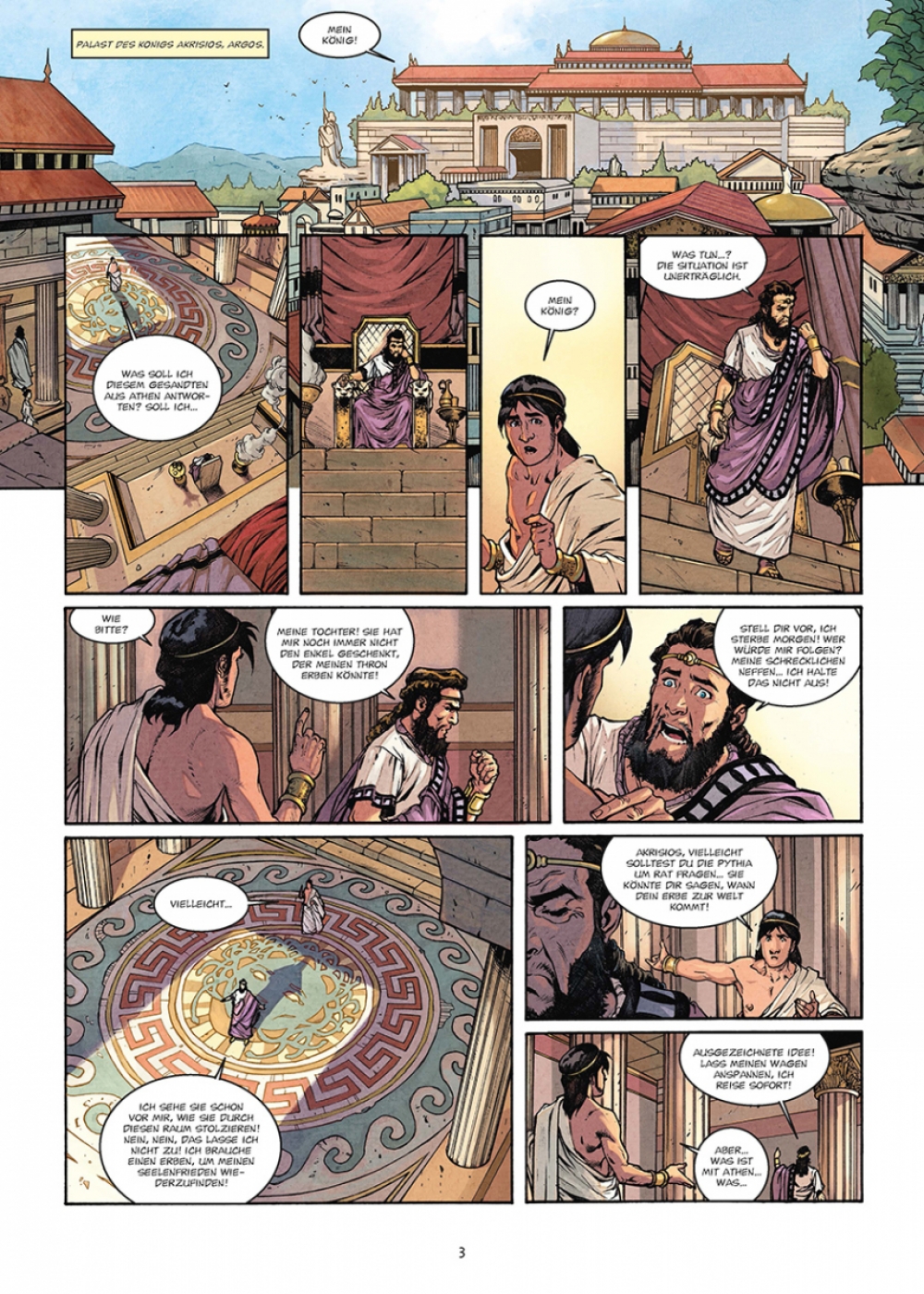 "Perseus, Sohn des Zeus und der Prinzessin Danaë, erhält die scheinbar unmögliche Aufgabe, der Gorgonin Medusa den Kopf abzuschlagen. Jene Medusa, deren bloßer Anblick jeden Mann zu Stein erstarren lässt! Doch die Götter sind auf Perseus' Seite, und mithilfe ihrer Gaben und dank seiner Listigkeit gelingt ihm die Heldentat. Aber das ist erst der Beginn von Perseus' abenteuerlichen Reisen.