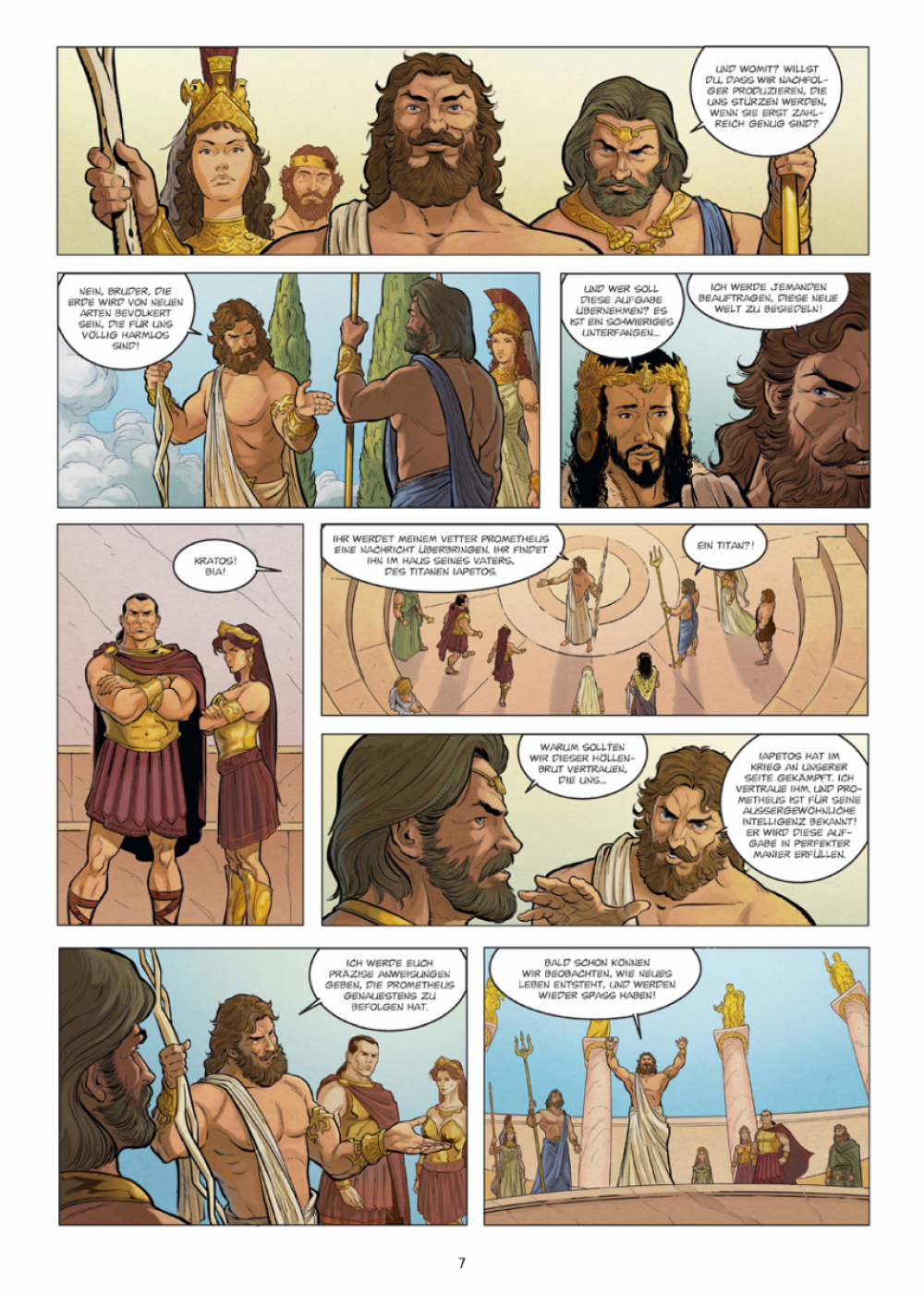 Unter den Göttern des Olymp herrscht ausgelassene Freude, denn soeben haben sie den Krieg gegen die Titanen gewonnen und sind nun die unangefochtenen Herrscher des Universums. Aber der Überschwang weicht schon bald der Langeweile, und darum erteilt Zeus dem Titanensohn Prometheus den Auftrag, Leben zu schaffen und die Sterblichen, auf dass ihre Existenz den Göttern Unterhaltung und Beschäftigung biete. Eine von Prometheus Kreationen überragt dabei alle anderen, denn sie ist sein Schützling: die Menschen wurden von ihm mit Macht versehen, die jener der Götter nahekommt. Und dafür zieht Prometheus den Zorn des Göttervaters auf sich.