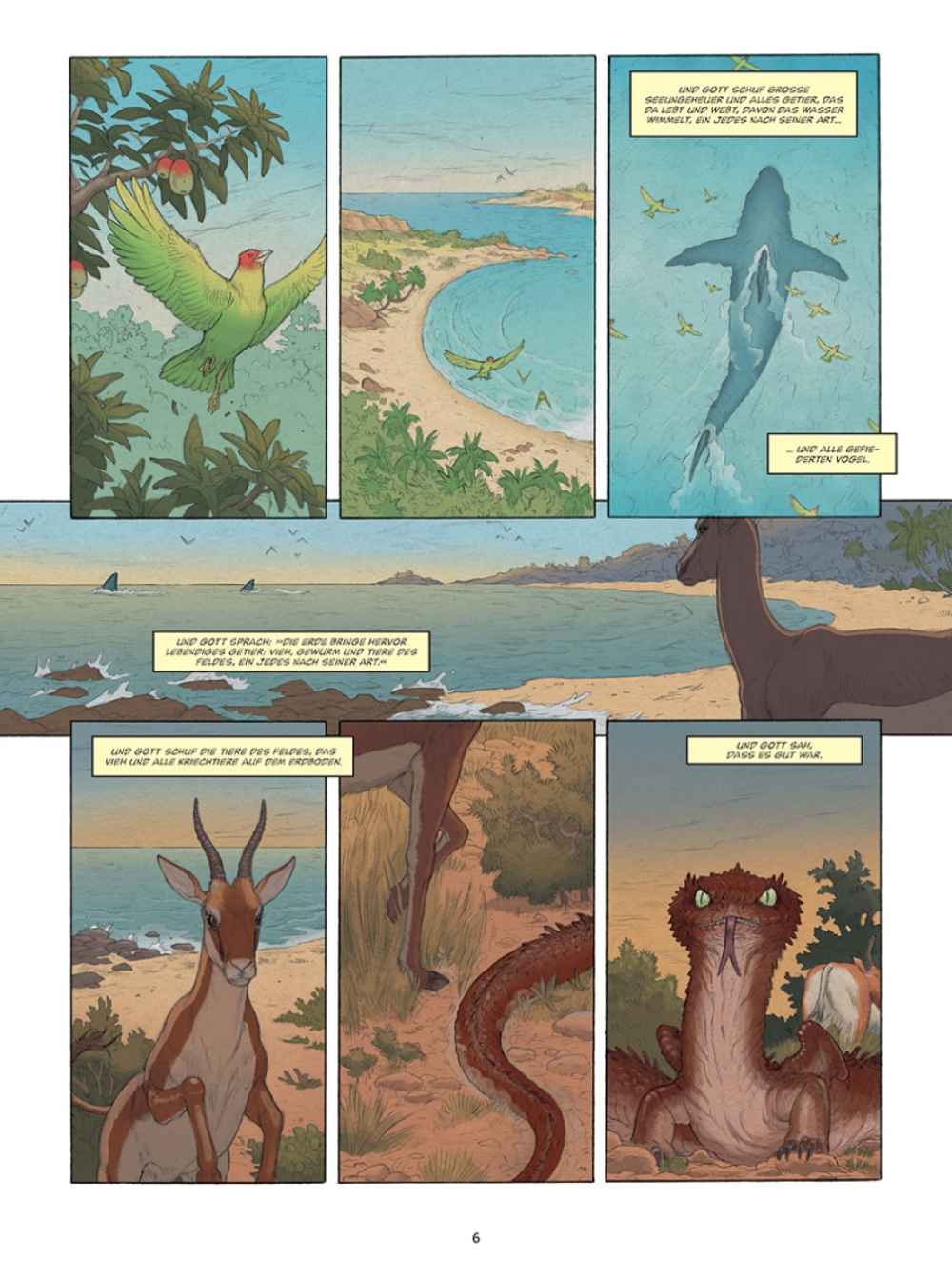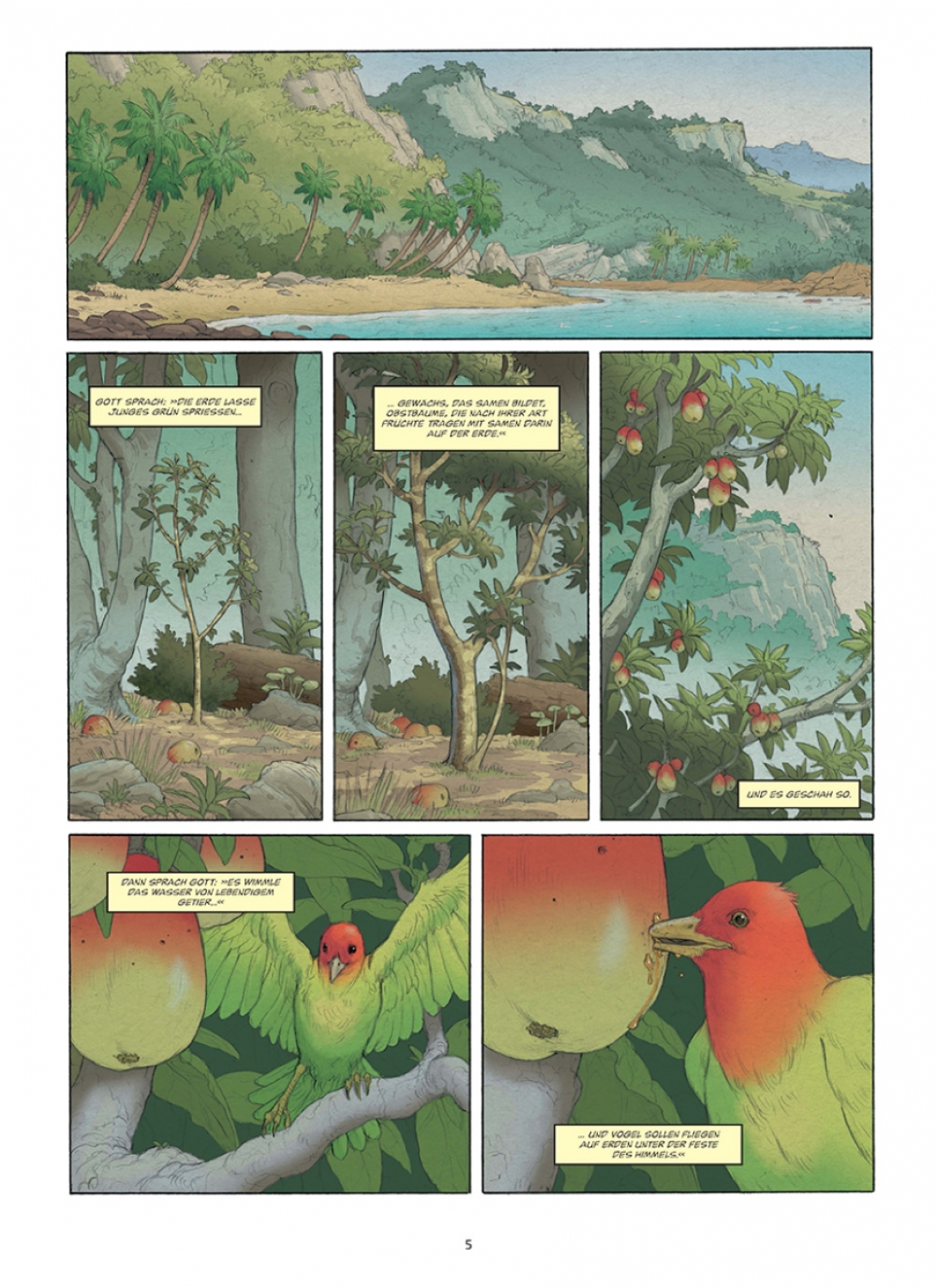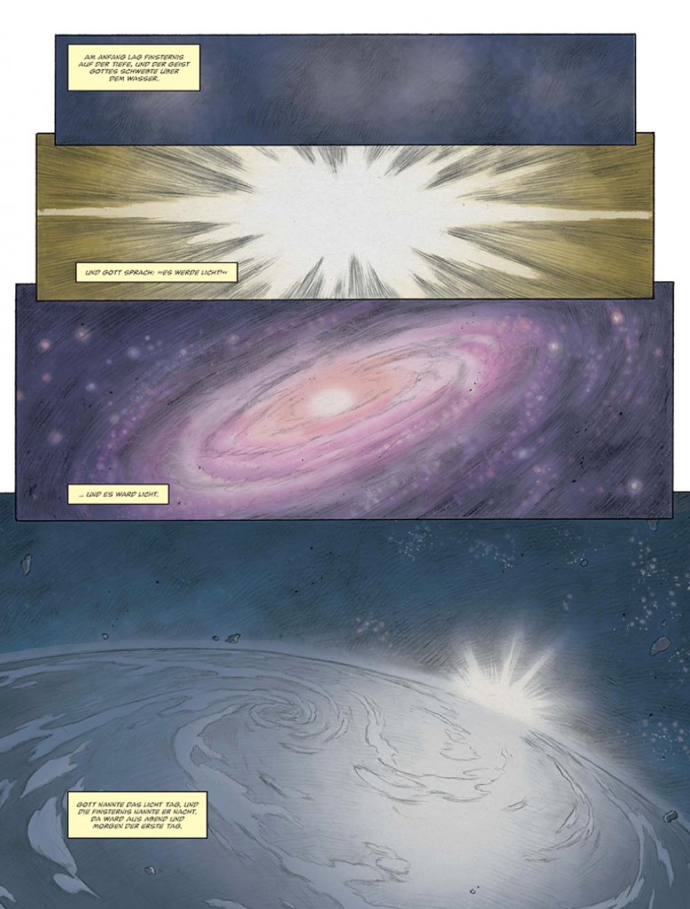 Am Anfang schuf Gott Himmel und Erde. Und im Verlauf von sechs Tagen folgte ein Universum voller Schönheit, in dem ein jedes seinen Platz fand: die Gestirne und die Elemente, der Himmel und die Erde, die Tiere und die Pflanzen und schließlich Adam, der erste Mensch, den Gott nach seinem Bilde schuf. Bald schenkte Gott Adam eine Gefährtin namens Eva, und zusammen leben sie im Garten Eden. Doch Eva erliegt der Versuchung der Schlange. Im Bestreben, Erkenntnis zu erlangen, isst sie von der verbotenen Frucht und weckt Gottes Zorn. Adam und Eva werden des Paradieses verwiesen und bevölkern von da an gepeinigt von der Last der Erbsünde die Erde...