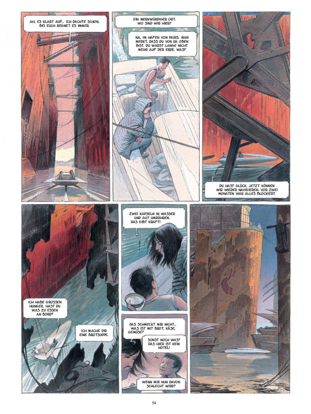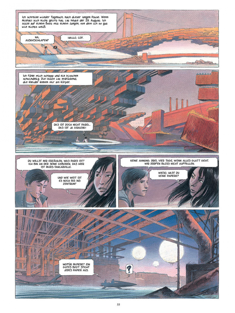 Das bequeme Leben in der Raumkolonie schmeckt Karinh nicht mehr. Sie soll endlich ihre zwei Normkinder bekommen, sagt die Behörde, die Bevölkerung muss stabil bleiben. Karinh träumt von Terra und einer märchenhaften Stadt namens Paris. Alle verfügbaren Informationen über den Ort hat sie gesammelt, sogar in Form dieser antiken „Bücher“. Da wird eines Tages eine Expedition zur Erde gestartet, und Karinh ist eine der Auserwählten, die mit an Bord darf.