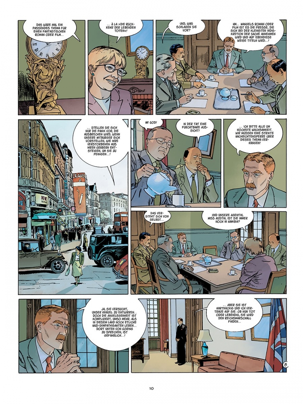 Unter der sengenden Sonne Südwestafrikas geschehen seltsame Dinge. Ein landwirtschaftliches Projekt wird von riesigen Raupen befallen. Und zur Begutachtung der Schäden steht mitten im Maisfeld – Hermann Göring, die ehemalige Nazi-Größe? Das erscheint nun wirklich unglaublich, denn schließlich schreiben wir das Jahr 1949. Und das heißt, Göring gilt seit drei Jahren als tot. Kein Wunder, dass sich der britische Geheimdienst einschaltet und Kathy Austin entsendet, um in Namibia nach dem Rechten zu sehen. Zwei Jahre zuvor hat die junge, attraktive Agentin immerhin die mysteriösen Vorfälle am Kilimandscharo aufgeklärt (s. den ersten Zyklus »Kenya«). Was sie nun an Ort und Stelle entdeckt – Rieseninsekten, ein ganzes Dorf, das von einer seltsamen Seuche befallen zu sein scheint –, stellt jedoch auch sie erst einmal vor ein komplettes Rätsel. Und dass der örtliche Repräsentant des MI6 sich als verbitterter Chauvinist und verbohrter Rassist erweist, macht ihre Ermittlungen nicht leichter.