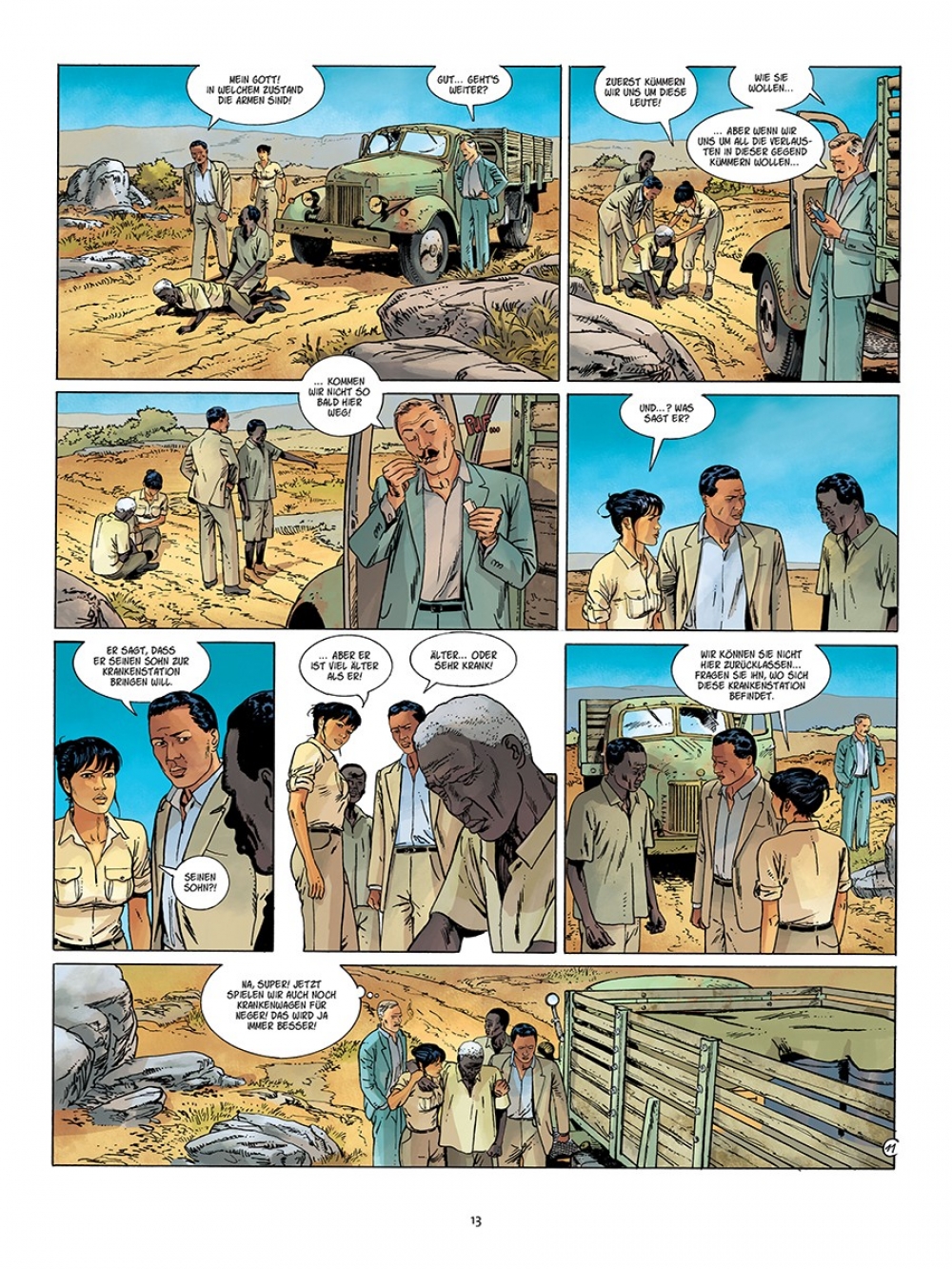 Das »Centaurus«-Team Leo (»Antares«, »Aldebaran«) und Co-Szenarist Rodolphe (u. a. »Trent«, »Der Fall E. P. Jacobs«) haben diesmal eine Mystery-Story geschrieben, die wie ein kolonialer Agententhriller à la Graham Greene beginnt, von Bertrand Marchal entsprechend klassisch illustriert, um dann langsam, aber unaufhaltsam in Richtung Akte X einzuschwenken. Und so ist es nicht nur das Wüstenklima, das sämtliche Beteiligte mehr und mehr ins Schwitzen bringt. Gediegene Spannung garantiert.