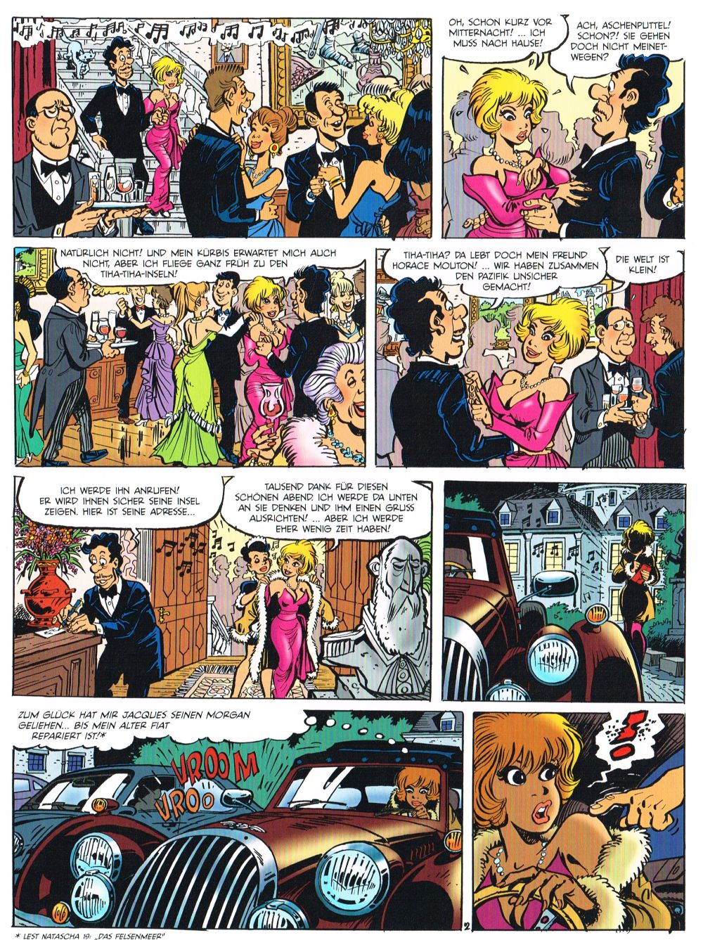 Natascha ist Gast auf einer Feier des Grafen von Froidbermont in Brüssel. Als dessen Kammerdiener sie bittet, ein Päckchen für ihn auf ihrem nächsten Flug auf die Insel Tiha-Tiha mitzunehmen und dort bei dem Import-Export Händler Horace Mouton abzugeben, ahnt sie nicht, in was für ein haarsträubendes Abenteuer sie und Walter durch ihre Gutmütigkeit geraten....