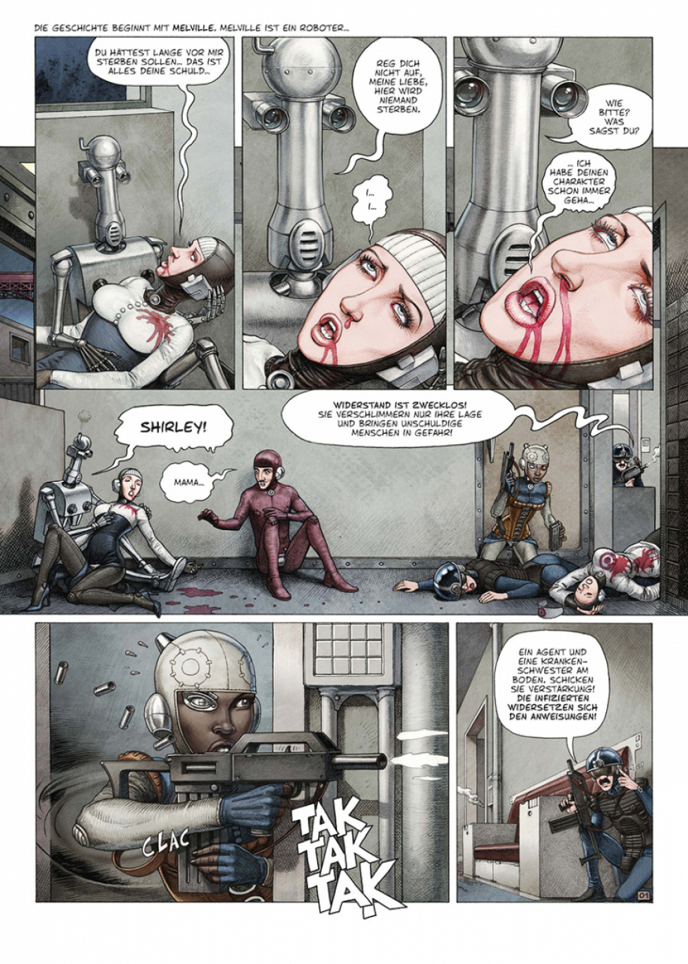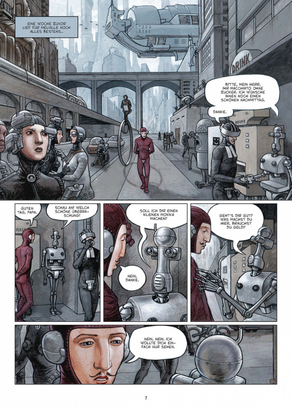 Ein prachtvolles Fresko voller Anklänge an Klassiker des Science-Fiction-Genres, von »12 Monkeys« bis zu »I Robot« – augenzwinkernder Retro-Futurismus im Look des Viktorianischen Zeitalters