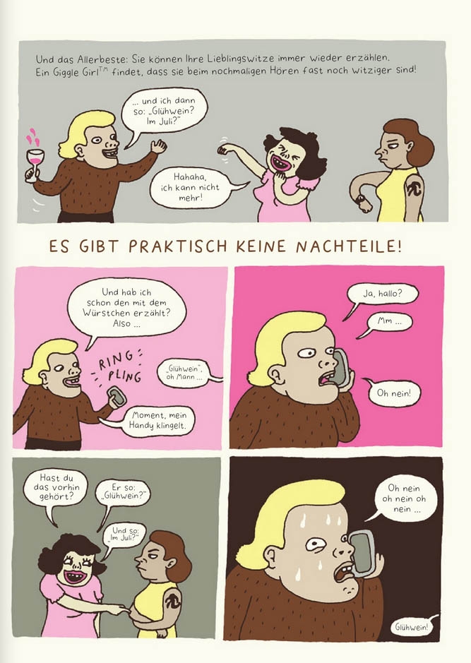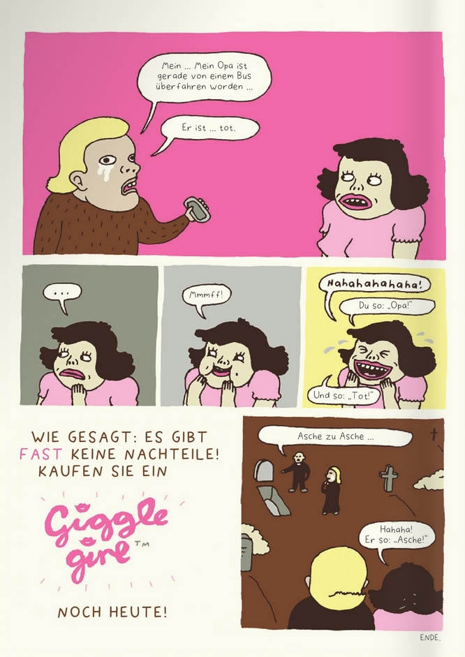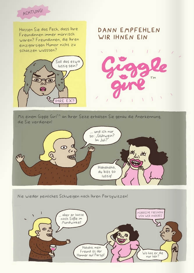 Nanna Johansson untersucht Schönheitsideale und hinterfragt ihre Ursprünge. Sie tut dies mit intelligenter Aufmerksamkeit und deckt so bizarre Sachverhalte und Ungerechtigkeiten unseres Alltags auf. Ihre Kommentare sind direkt, absurd und feministisch. Oft collagiert sie ihre Comics mit Fundstücken aus Zeitschriften und Fotografien.